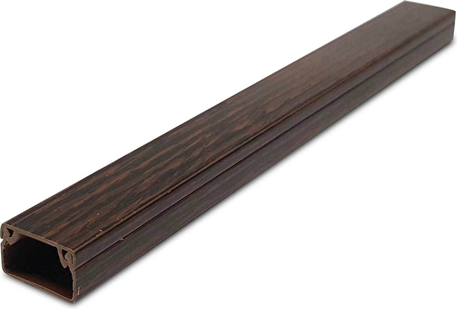Кабель-канал для проводов в расцветке венге подойдет практически к любому интерьеру и цветовым решениям.