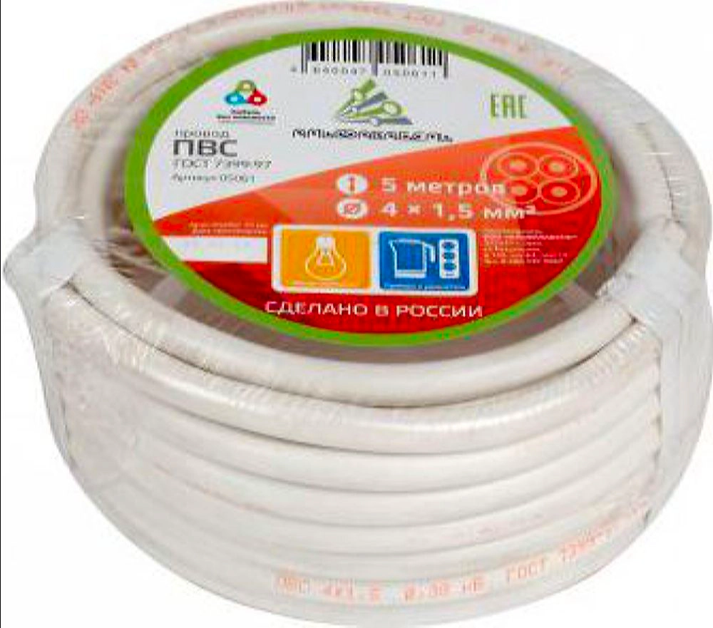 Провод силовой ПВС 4х1,5 кв. мм 5 м