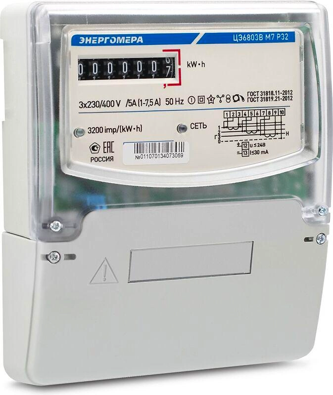 Счетчик ЭНЕРГОМЕРА ЦЭ6803В 1 230В 5-60А 3ф.4пр.М7 Р32 механический трехфазный однотарифный– прибор, который используется для учета активной электроэнергии.