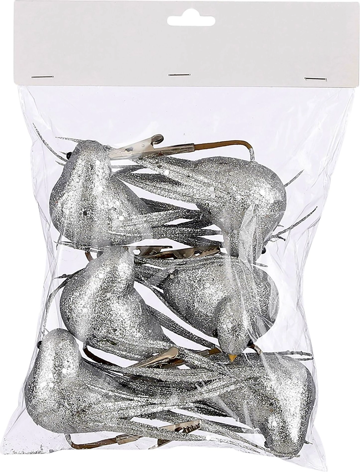 Набор птиц на клипсе 6 шт. серебро 18 см пенопласт.