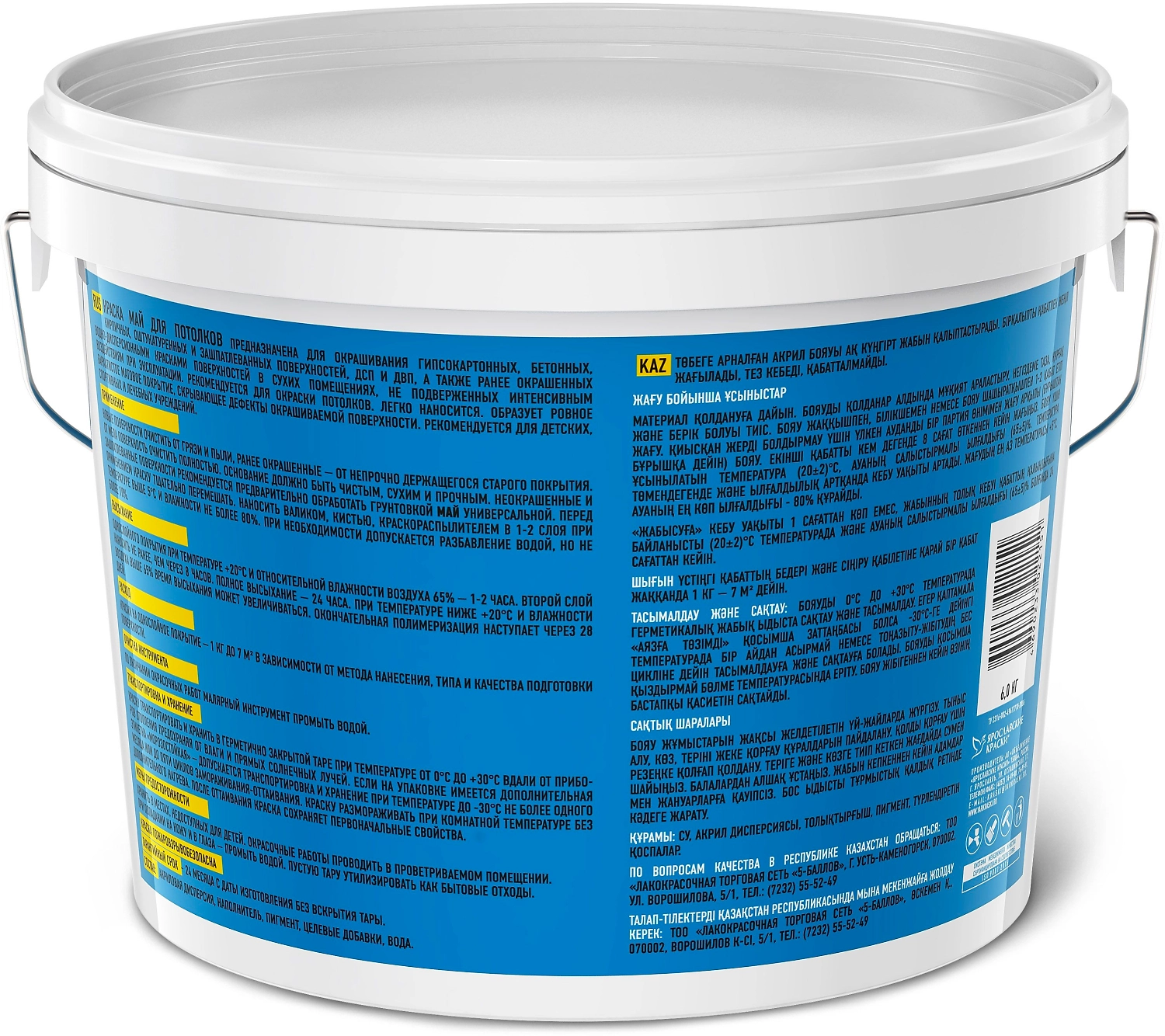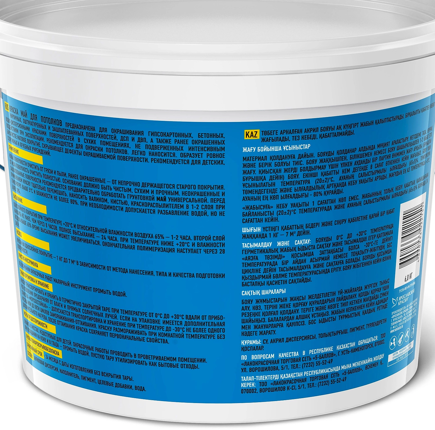 Супербелая акриловая краска МАЙ предназначена для окраски потолков и верхних ярусов стен в сухих помещениях, а так же гипсокартонных, бетонных, оштукатуренных и зашпатлеванных поверхностей, ДСП и ДВ.