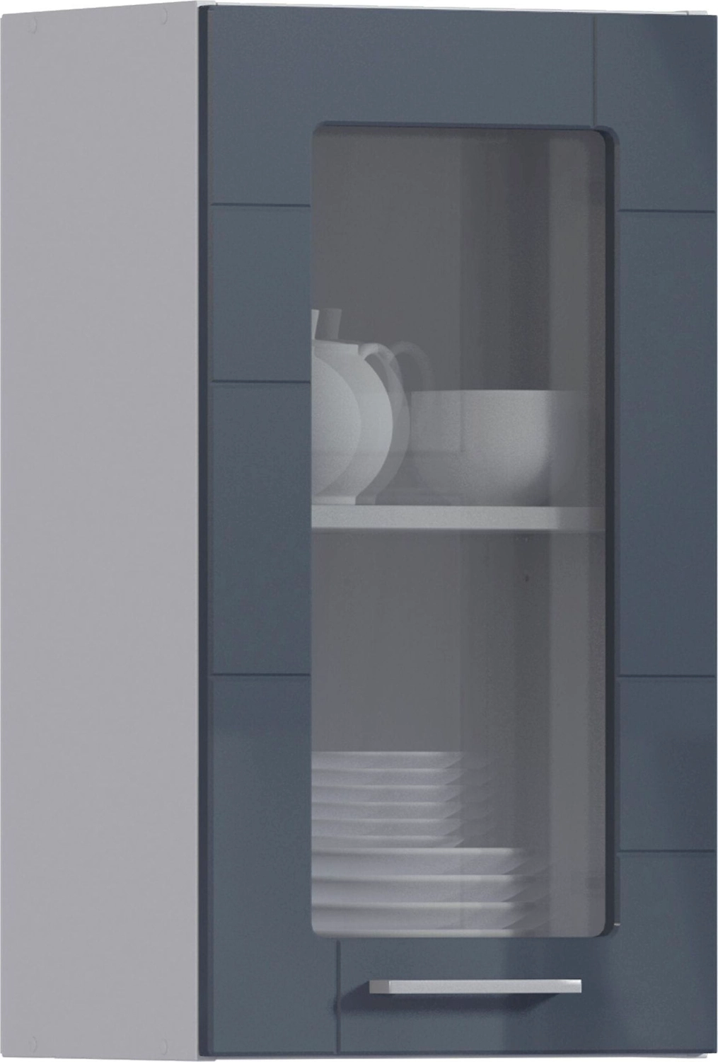 Фасад для тумбы Неаполь - дверца для навесного шкафа шириной 40 см. Модель выполнена в темно-сером цвете. Остекление позволяет сделать посуду, хранящуюся в шкафу, частью декора интерьера.