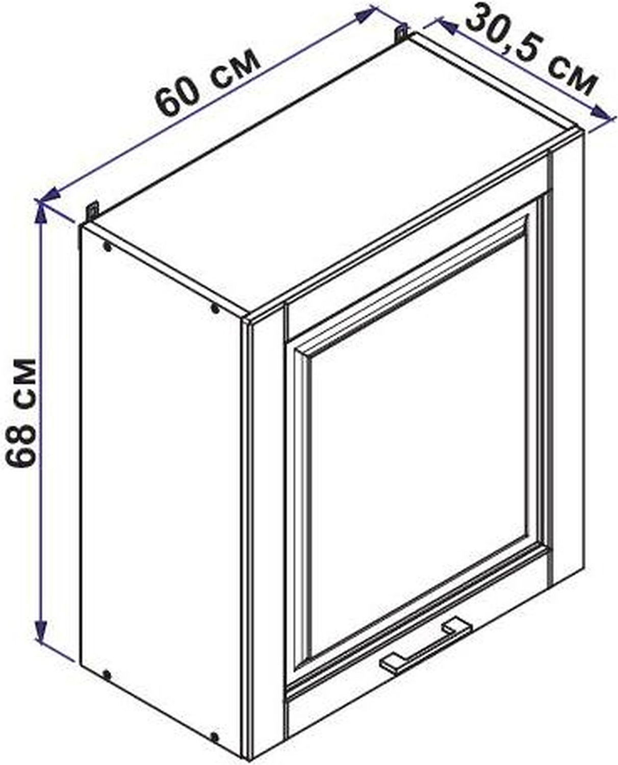 Шкаф навесной Филадельфия с фасадом 60 см - закрытый прямоугольный модуль из МДФ с распашной дверцей и полкой внутри.