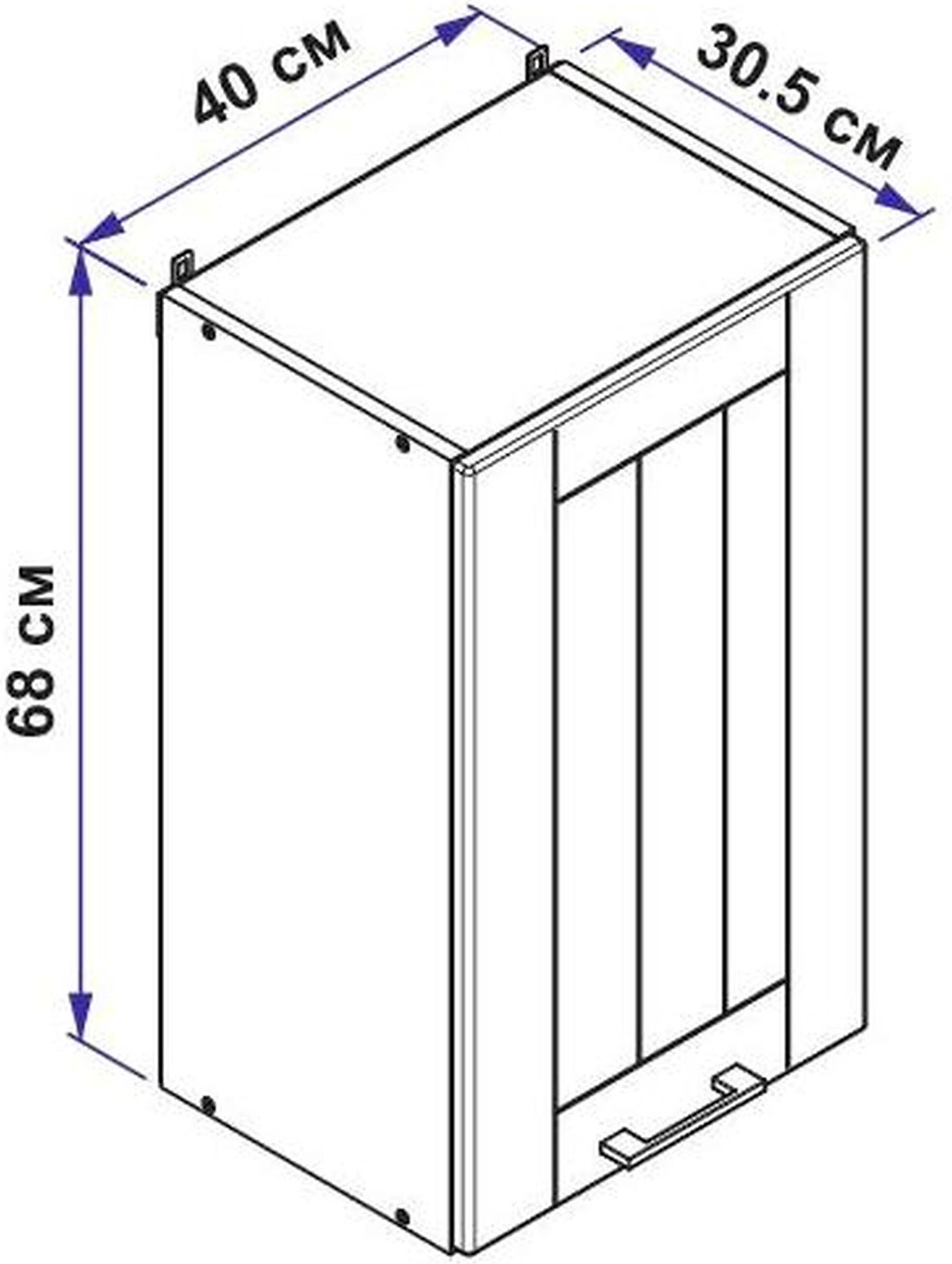 Навесной шкаф шириной 40 см предназначен для хранения чая, кофе, специй, посуды, кухонных принадлежностей и аксессуаров.
