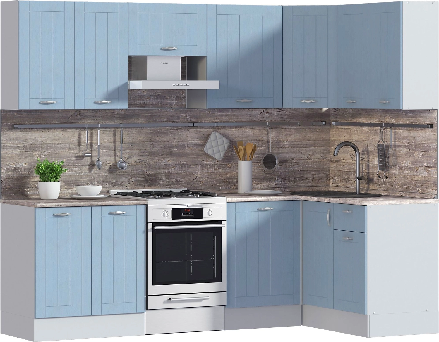 Шкаф навесной Кантри выполнен из МДФ, в спокойном бирюзовом оттенке. Модель имеет одну дверцу с удобной ручкой цвета “хром”. Данная конструкция позволяет спрятать вытяжную трубу, что обеспечивает интерьеру эстетичный и завершенный вид.