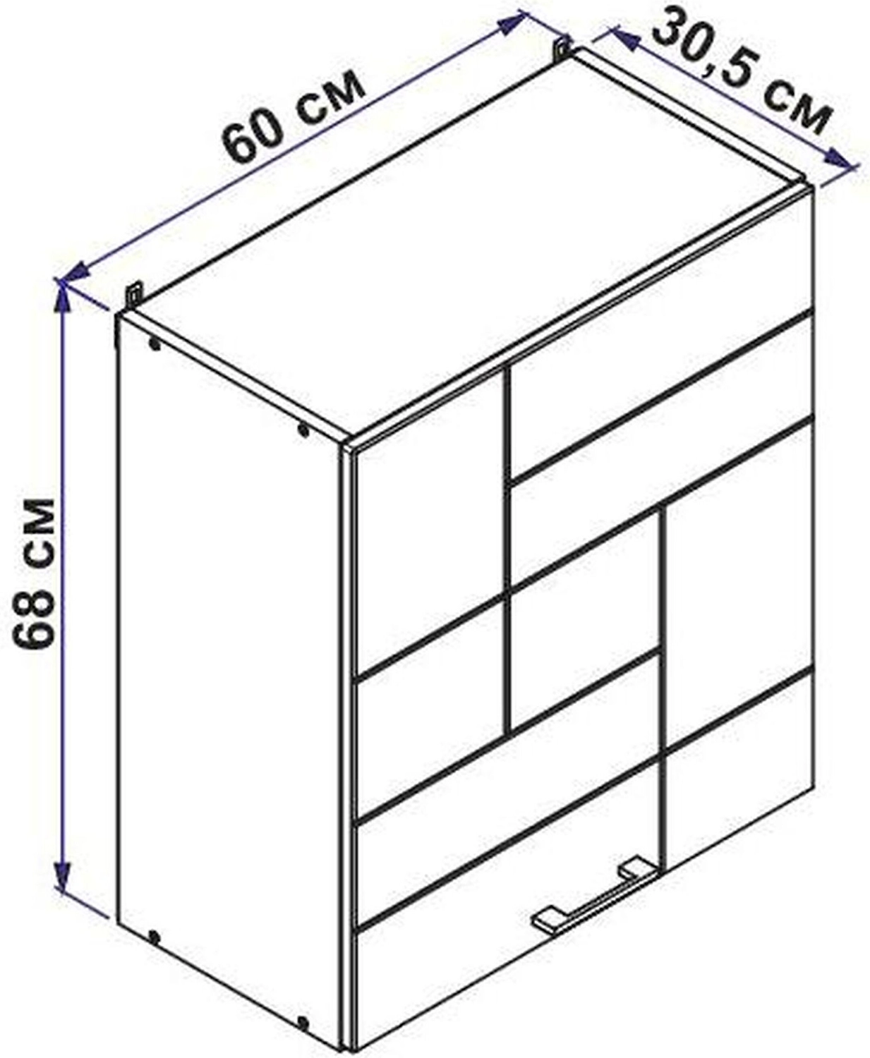 Шкаф навесной Неаполь шириной 60 см - компактный настенный модуль с распашной дверцей и полкой для хранения посуды и продуктов.