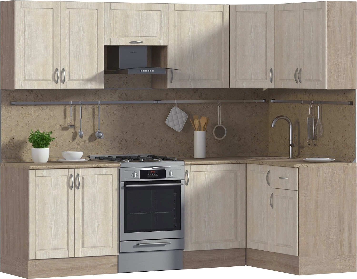 - Шкаф с универсальными габаритами подходит к кухням разной конфигурации.