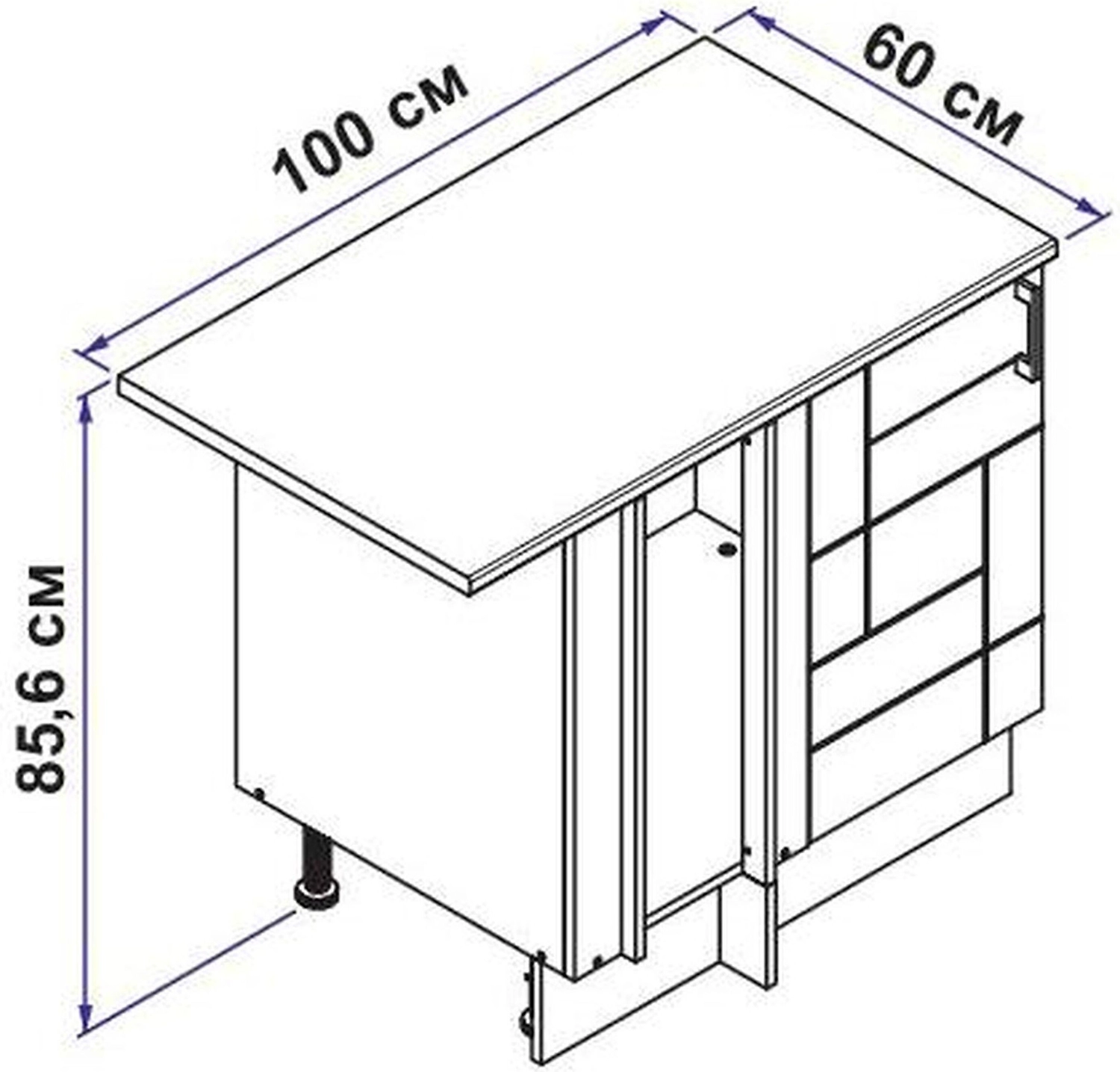 - Декоративный цоколь закрывает регулируемые по высоте ножки.