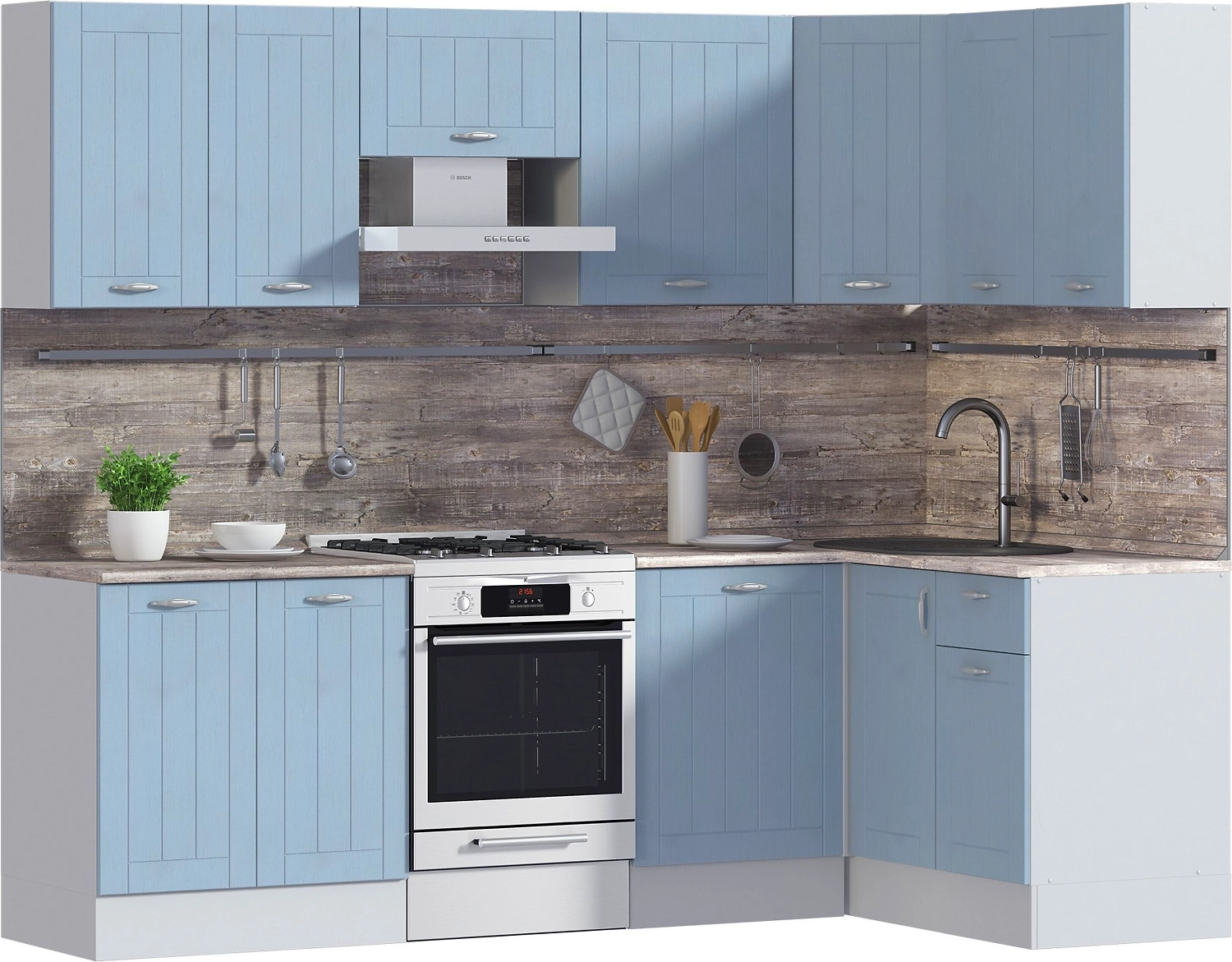 Кантри - линейка кухонной мебели, подчеркивающая деревенскую тематику в интерьере. Светлый голубой оттенок визуально освежает помещение, приятная древесная фактура создает атмосферу тепла и покоя, свойственную загородным домам.