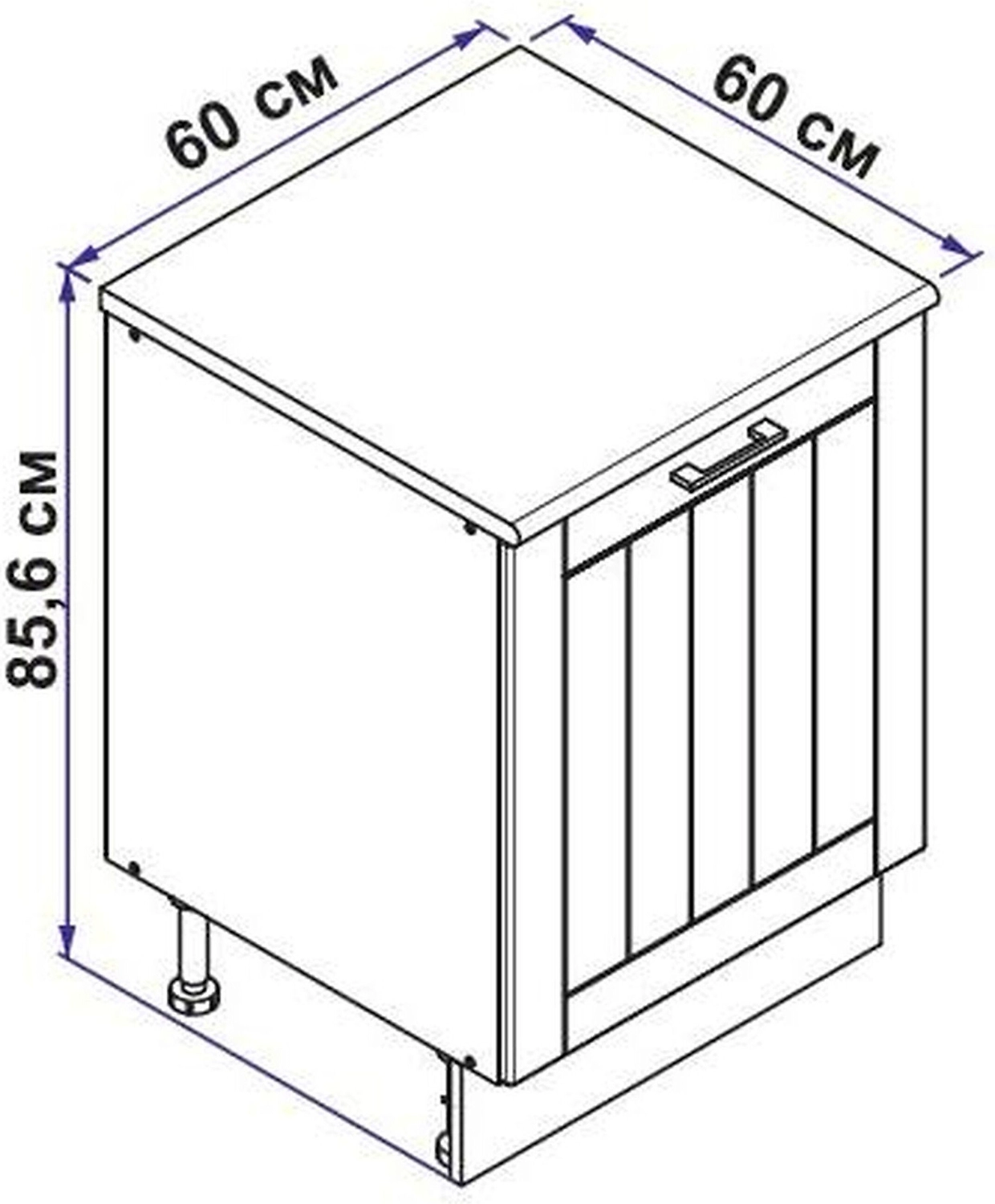Шкаф напольный Кантри шириной 60 см предназначен для хранения габаритной кухонной утвари, может быть использован в качестве каркаса для кухонной мойки.