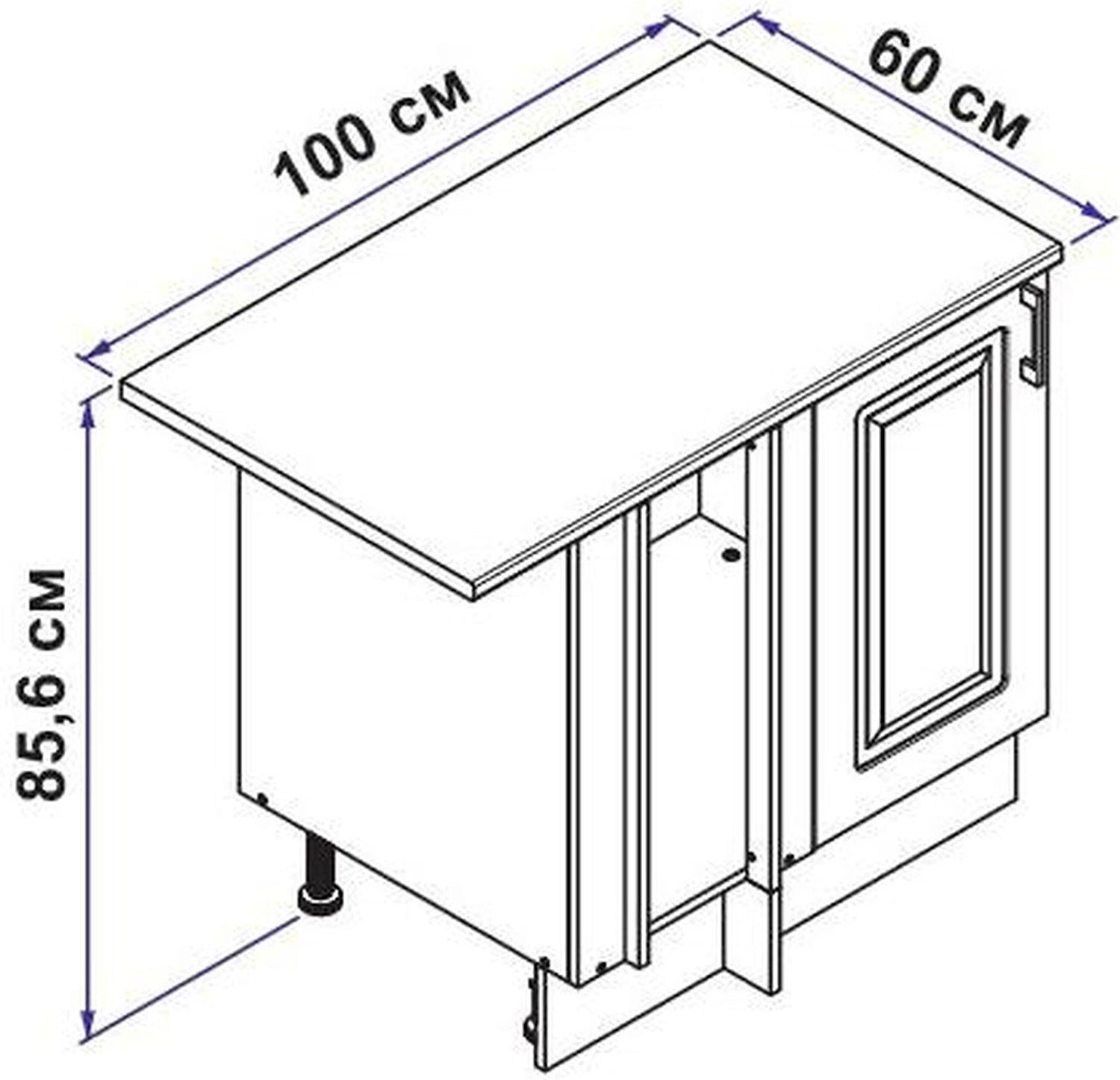 Оборудовать современную кухню без помощи специалистов легко с помощью модульной мебели. Элементы гарнитура складываются в единый ансамбль подобно конструктору. Кухня "Марсель" благородная классика и изящный вкус. Плавная симметричная резьба на дверцах фасада и элегантная ручка, теплый глубокий оттенок дерева, подчеркнут: семейные традиции и благородство. Шкаф 100 напольный угловой кухни "Марсель" имеет ширину 100 см. Данная модель, используется для построения углового типа кухонного гарнитура, исключая появления мертвых зон. Шкаф, может быть, использован в качестве каркаса "мойки". Для этого необходимо приобрести "кухонную мойку". Шкаф универсальный: левый и правый. Устанавливается на плоскость пола, регулируется по высоте с помощью ножек, входящих в комплект.