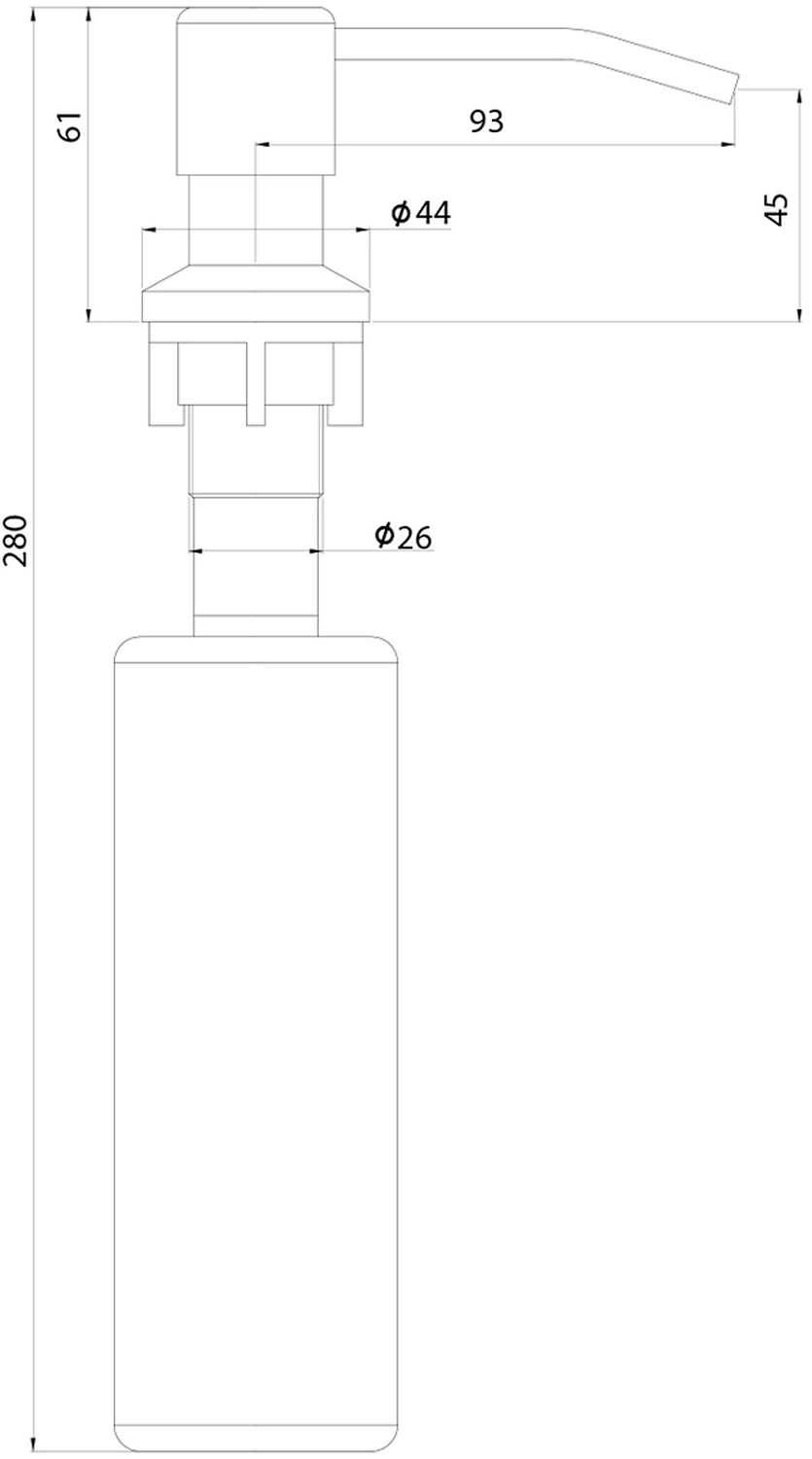 Дозатор для моющего средства предназначен для монтажа в столешницу или в мойку (при наличии врезного отверстия).