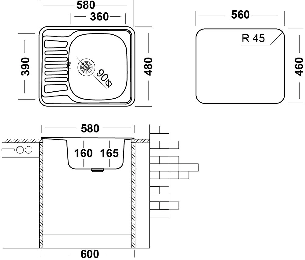 Кухонная мойка COM580.480 классической формы российского производства из высококачественной нержавеющей стали. Прямоугольная модель гармонично впишется в стилистику любого кухонного интерьера. Изделие состоит из двух секторов: небольшое крыло и основная чаша. Чаша располагается относительно крыла либо слева, либо справа, т.к.мойка оборотная. Раковина производится из нержавеющей стали толщиной 0,6 мм с видом поверхности Матовый металл. Модель врезного способа монтажа, имеет размеры 580х480 мм и предназначена для установки в тумбу от 45 см. Вместимость основной чаши позволяет свободно и с комфортом использовать мойку даже при мытье крупногабаритной посуды. Глубина чаши составляет 165 мм. Оснащение дополнительными аксессуарами, например, моечной корзиной, увеличат функциональность мойки в процессе эксплуатации. Небольшое крыло послужит дополнительной полезной площадью рядом с чашей. Его используют для хранения грязной посуды, либо сушки уже вымытой посуды, чему способствует рельефный рисунок, в том числе, крыло можно использовать для разморозки продуктов или хранения фруктов/овощей перед приготовлением. Чаша оборудована большим выпускным отверстием 3½ʺ и переливом для воды, что исключает риск переполнения чаши водой и затопления. Накладки на дне мойки из специального противошумного состава поглощают шум от льющейся воды. Эстетичный внешний вид и защита от протекания за счет специальной обработки краев и плотного прилегания к столешнице, благодаря специальной уплотнительной прокладке. Уход за изделием будет легким и быстрым, благодаря уникальным свойствам нержавеющей стали: отсутствие пор и микротрещин исключает скопление грязи и бактерий на поверхности. Мойки из нержавеющей стали являются экологичными, абсолютно безопасными для здоровья, не впитывают запахи, имеют стойкость к коррозии и высоким температурам. Такая конструктивная особенность как скругленные углы чаши, также облегчат уход за мойкой и существенно увеличивают полезный объем чаши.