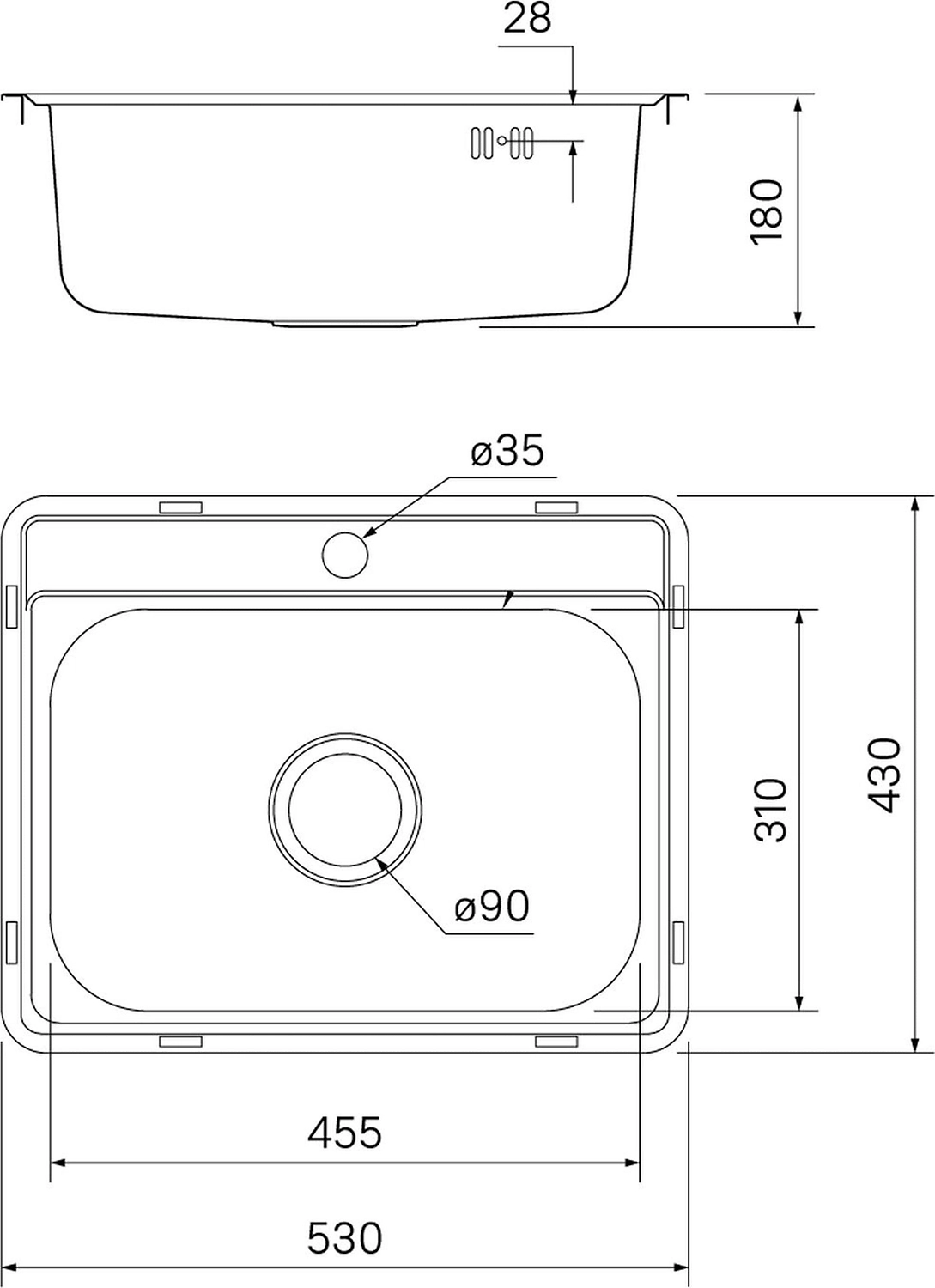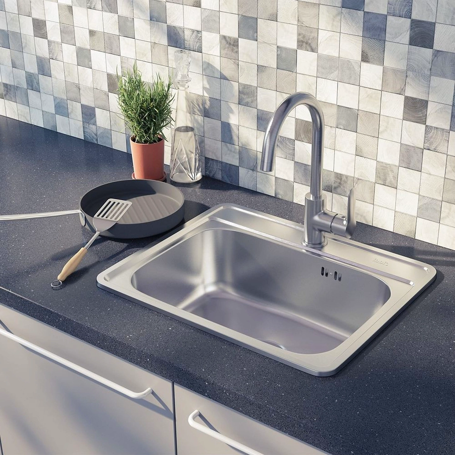 - Качественная нержавеющая сталь толщиной 0,6 мм обеспечивает надежность, ударопрочность мойки и ее стойкость к износу.