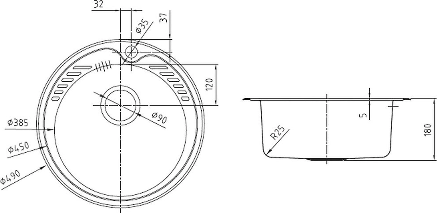 • Диаметр сливного отверстия