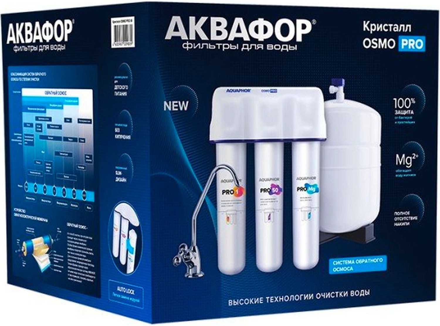 Благодаря ультратонкой очистке воды, АКВАФОР Osmo Pro 100 удалит даже самые опасные примеси, включая токсичные вещества, бактерии и вирусы, — система полностью заменит воду из пластиковых бутылок. Используйте только свежую отфильтрованную воду для питья, кулинарии, детского питания и домашней бытовой техники.