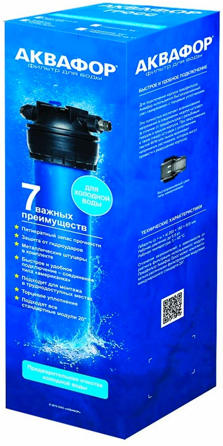 Корпус Аквафор Гросс 20 - основа водоочистителя, предназначенная для размещения сменного фильтрующего модуля стандарта 20 дюймов. Корпус выполнен из стеклонаполненного пластика, имеет пятикратный запас прочности.