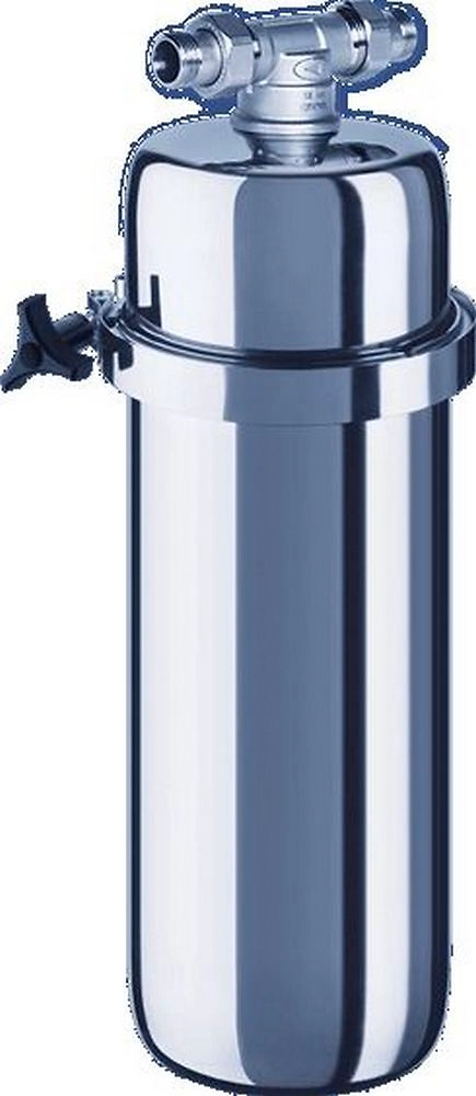 Корпус и кронштейн выполнены из нержавеющей стали и обеспечивают легкую установку фильтра и замену фильтрующего модуля. Производительность до 25 л/мин