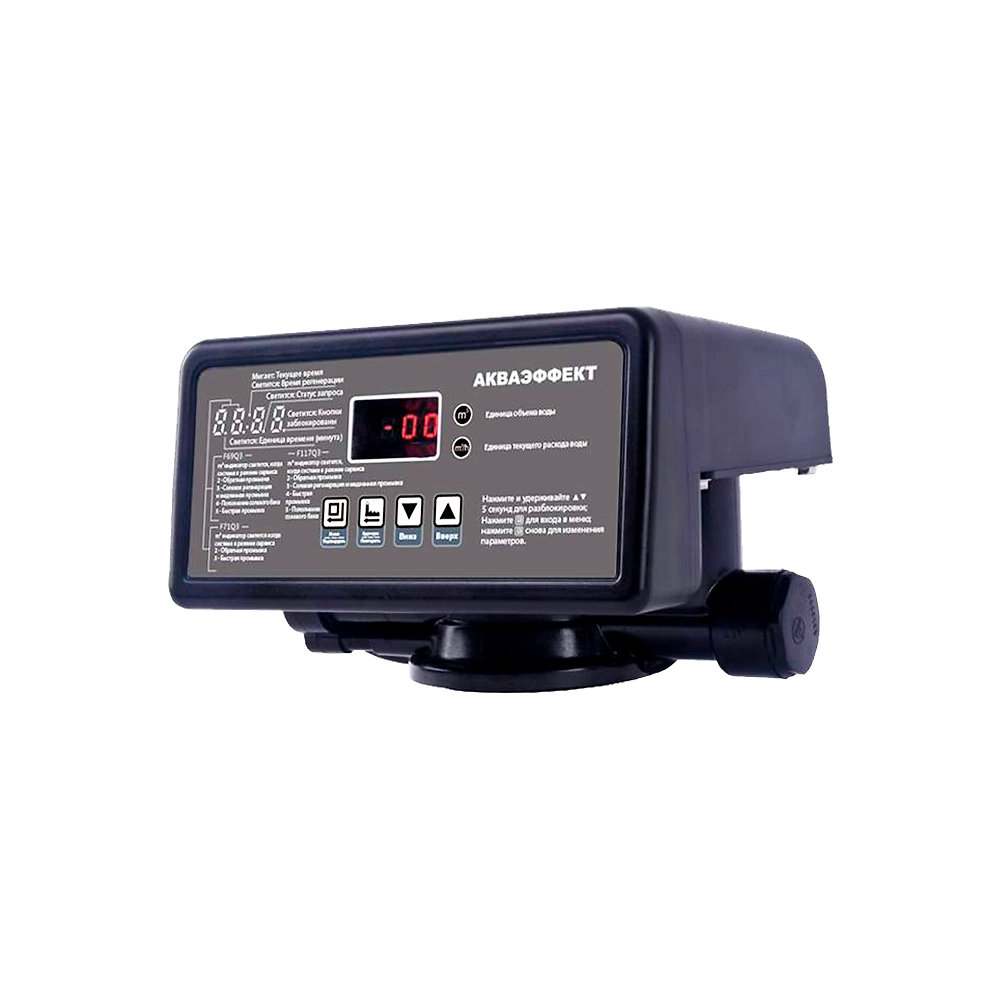 Управляющий клапан надежно работает при давлении от 1,5 до 6 бар, его просто настроить самостоятельно — меню реализовано на русском языке.