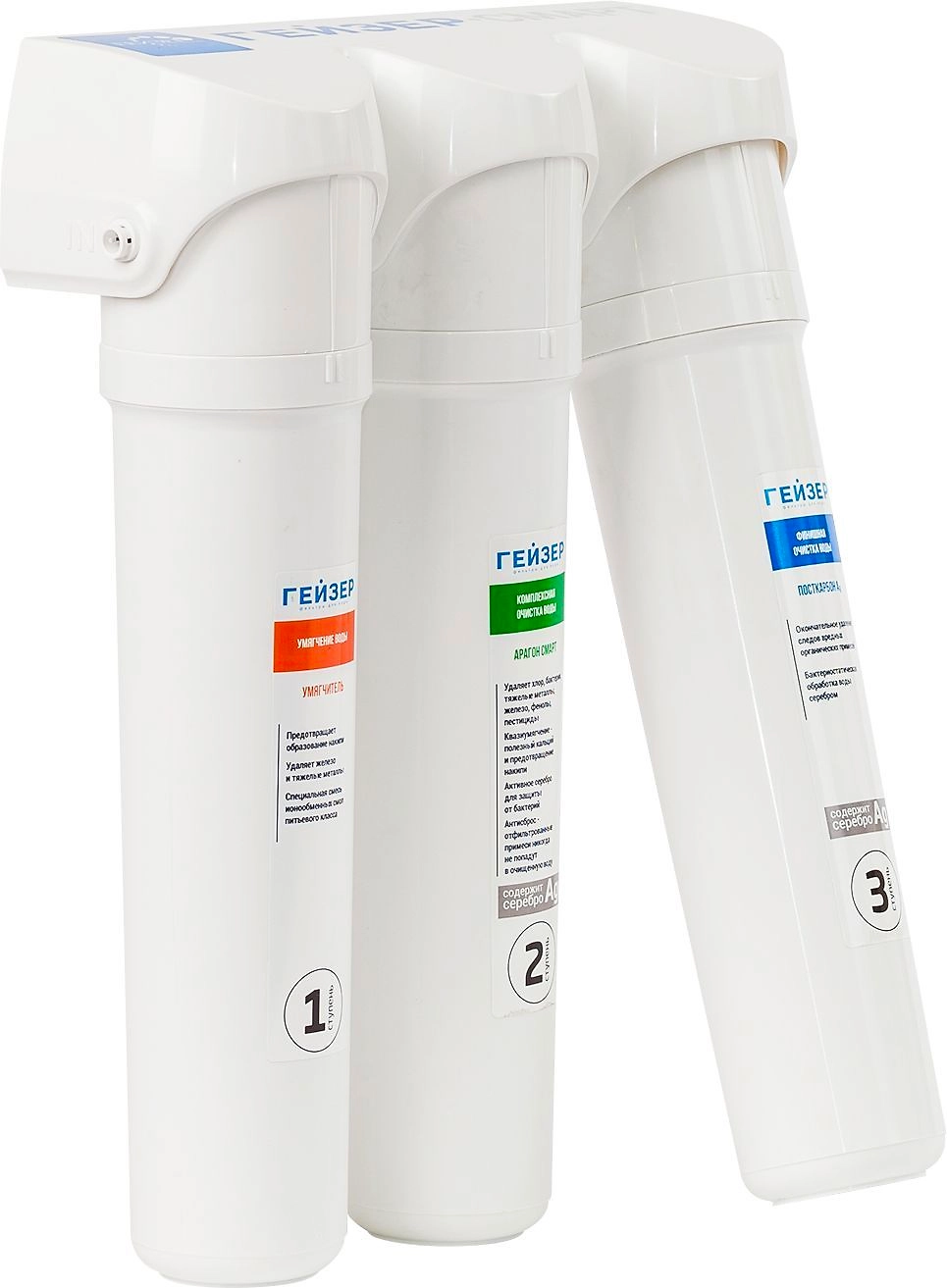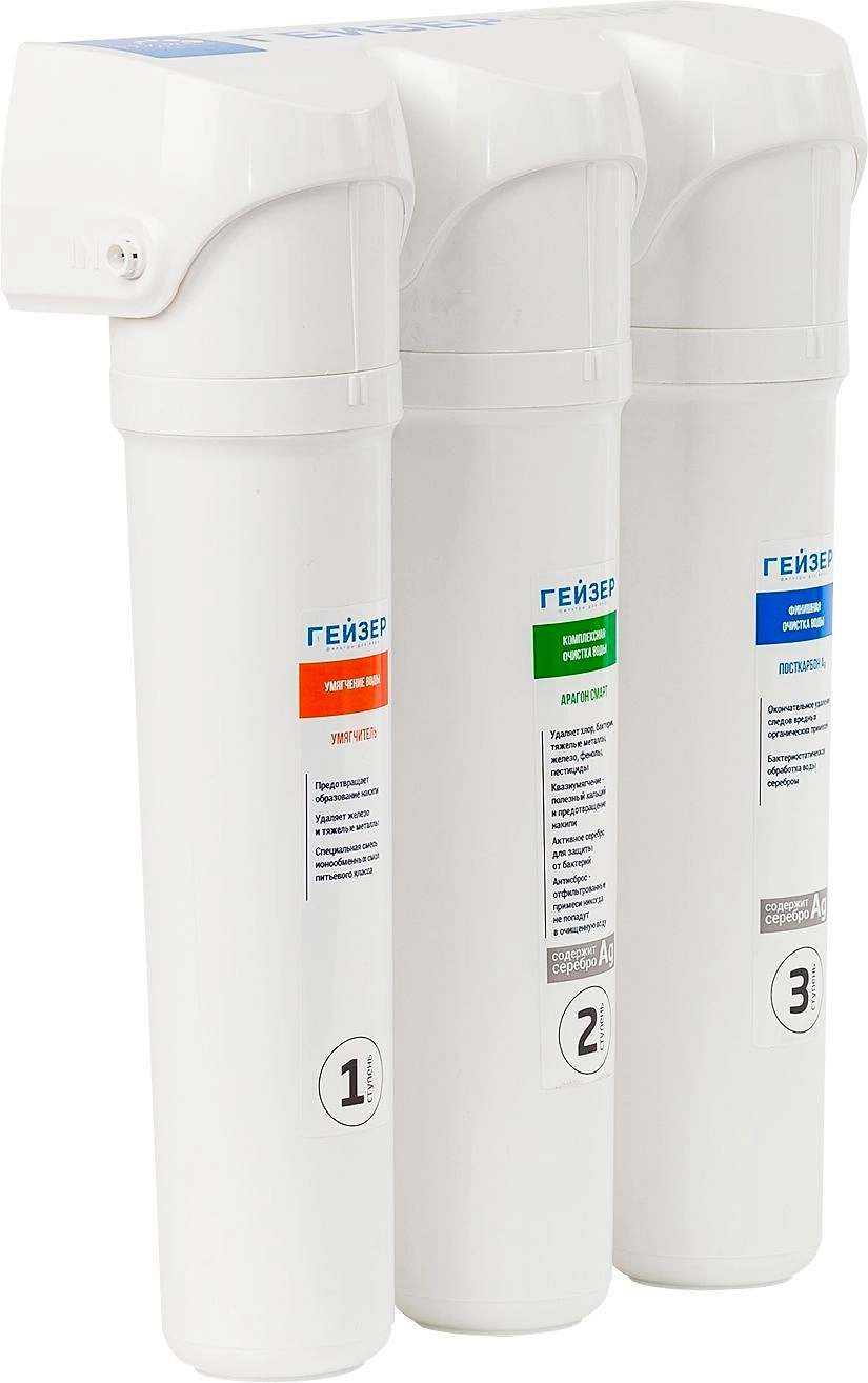 Система Гейзер Смарт для жесткой воды состоит из трех компактных быстросъемных модулей, которые до 18 месяцев обеспечивают эффективную фильтрацию.