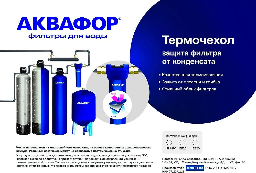 Термочехол для корпусов фильтров SL10. Подходит к корпусам фильтров типоразмера SL10 любых производителей. Корпусы фильтров устанавливаются в помещениях жилого и технического назначения, зачастую без дополнительного оборудования вентиляцией. Внутри фильтра находится очень холодная скважинная вода, а в самом помещении, при этом – тепло и влажно. По этой причине и образовывается сильный конденсат, и, как следствие - лужи на полу. Специальный изотермический чехол исключает производство конденсата фильтром и обеспечивает сухость в помещении.
