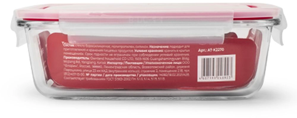 Контейнер из жаропрочного стекла с пластиковой крышкой прекрасно подходит как для запекания, так и для хранения продуктов. Герметичная крышка поможет сохранить вкус и аромат блюда, а также делает контейнер удобным в транспортировке.