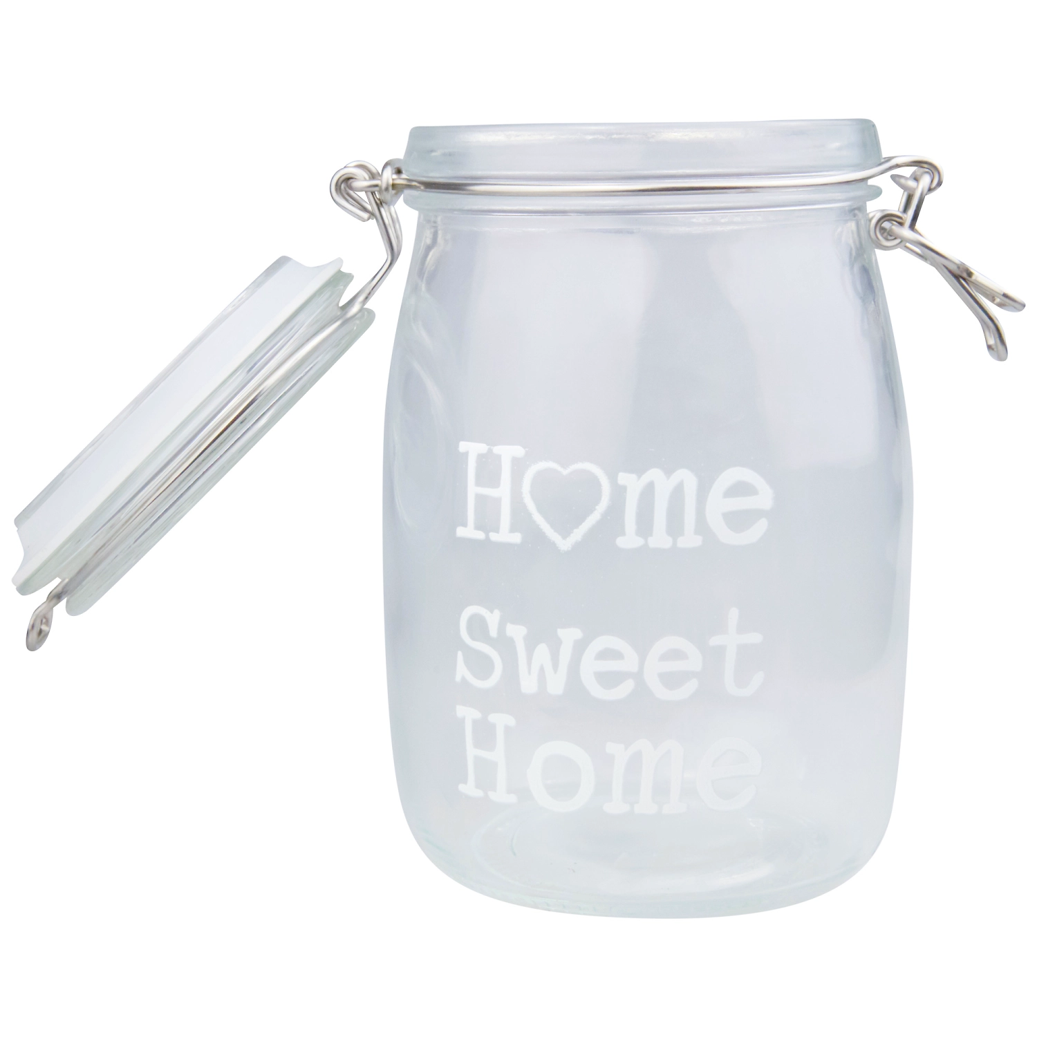 Банка декоративная Home Sweet Home - стеклянная емкость для хранения сыпучих продуктов и мелких вещей. Дизайнерский аксессуар для кухни эффектно смотрится на открытой полке или в шкафу со стеклянной дверцей.