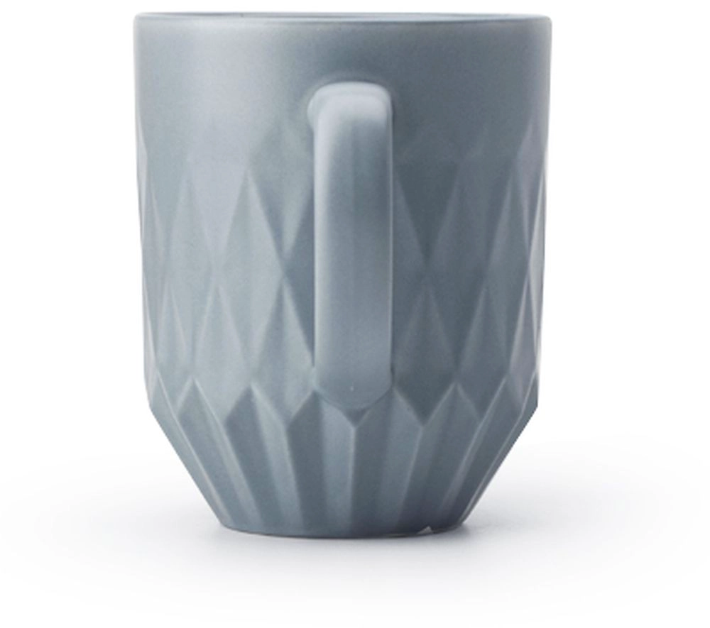 Кружка фарфоровая стандартного объема с интересным геометрическим рельефным дизайном. Представлена в ассортименте цветов.
