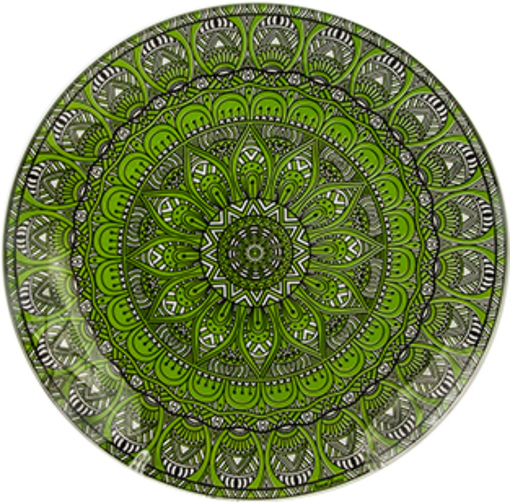 Тарелка обеденная NINA GLASS 26 см стеклянная белый/зеленый/черный