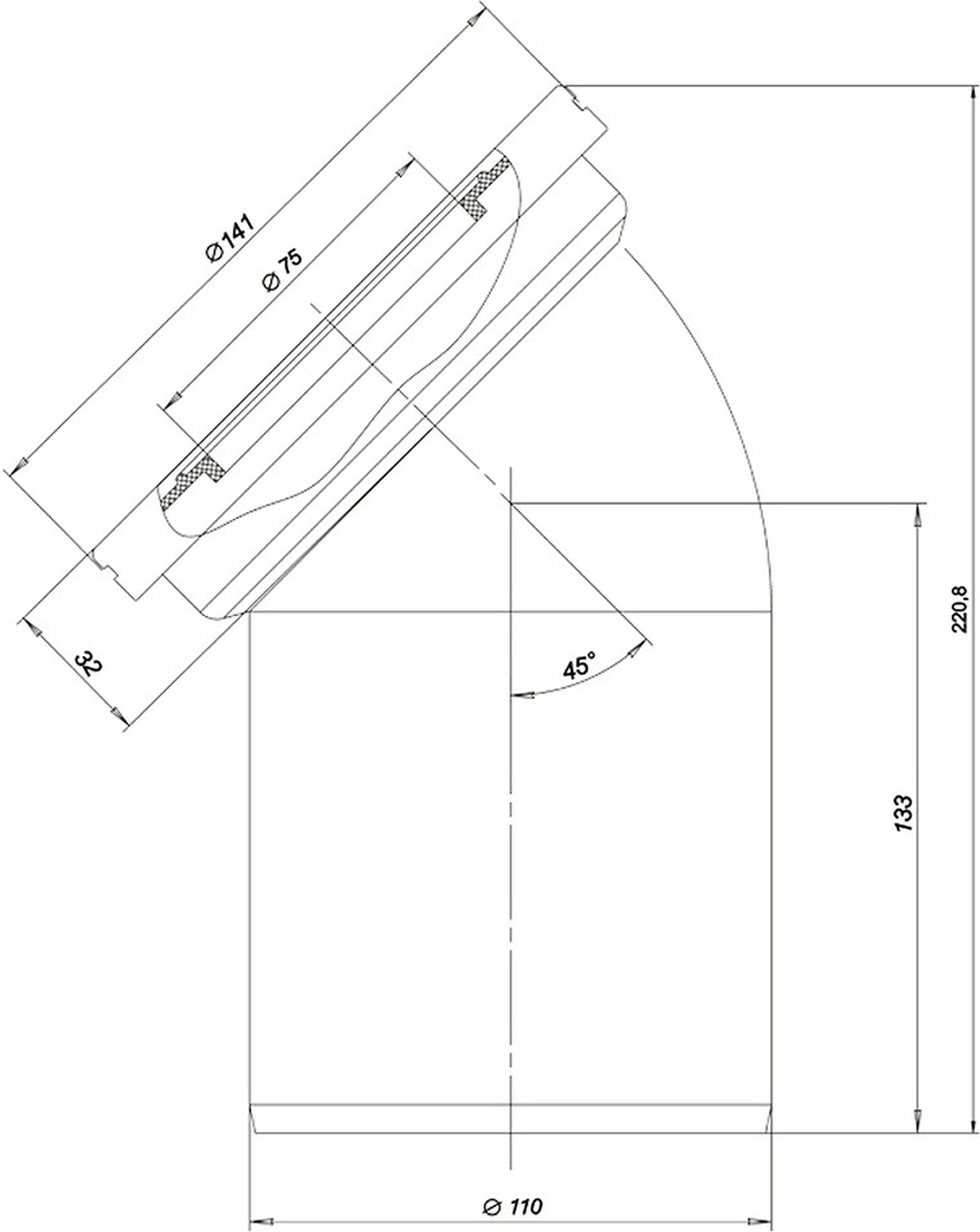 • Диаметр отвода 110 мм