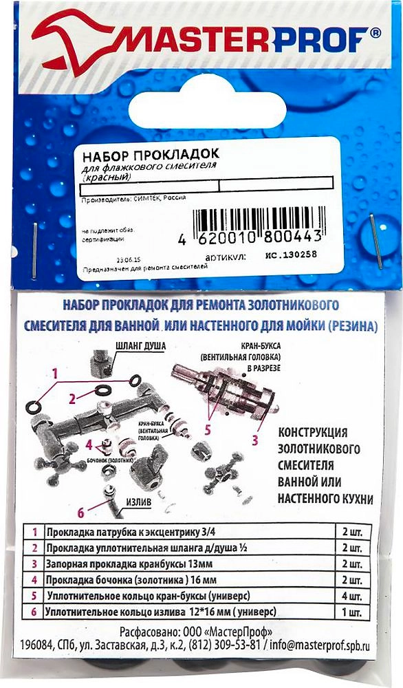 Данный набор прокладок предназначен для ремонта золотникового (флажкового) смесителя (имеется ввиду смеситель с переключением с крана (дивертором) на душ флажкового типа). Набор позволяет произвести замену всех прокладок смесителя. Подробная схема указана на обороте. Прокладки изготовлены из резины, благодаря чему имеют ряд преимуществ: обладают несущественным поглощением жидкости, а также повышенной устойчивостью к износу, непроводимостью электрической энергии и стойкостью к истиранию.