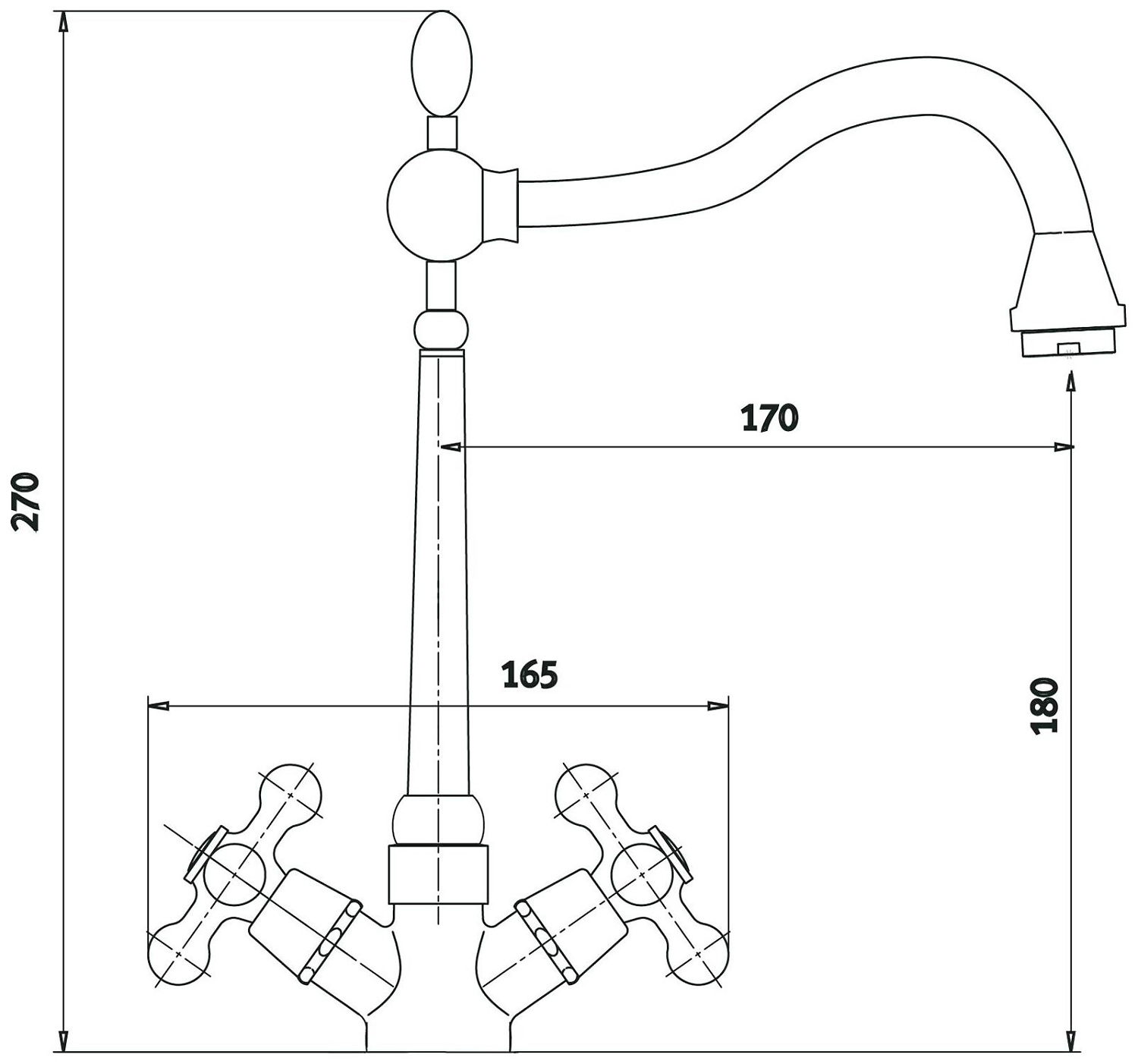Искусно стилизованный под старину смеситель Cascada Manresa CAS4806-B украшает кухню в классическом, винтажном или ретро стиле.