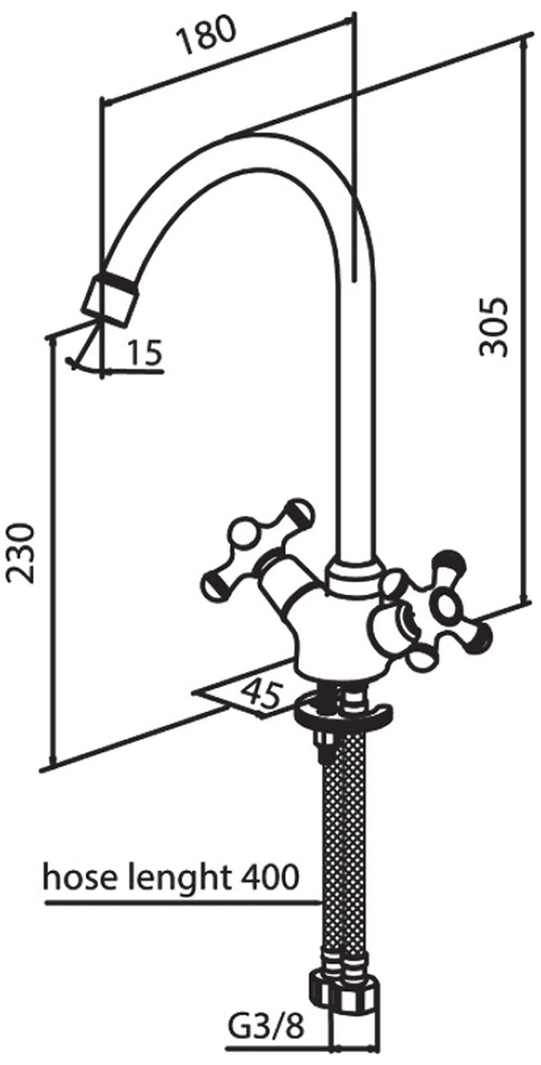 Смеситель RedBlu by Damixa Retro Object 230000000 устанавливается на одно отверстие в кухонной мойке или столешнице, подключается к водопроводу с помощью входящей в комплект гибкой подводки.