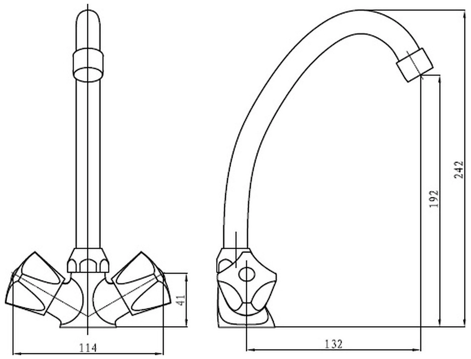 Смеситель для кухни Water Line 23504 - традиционная модель из латуни с хромированным покрытием с раздельным управлением подачей холодной и горячей воды.