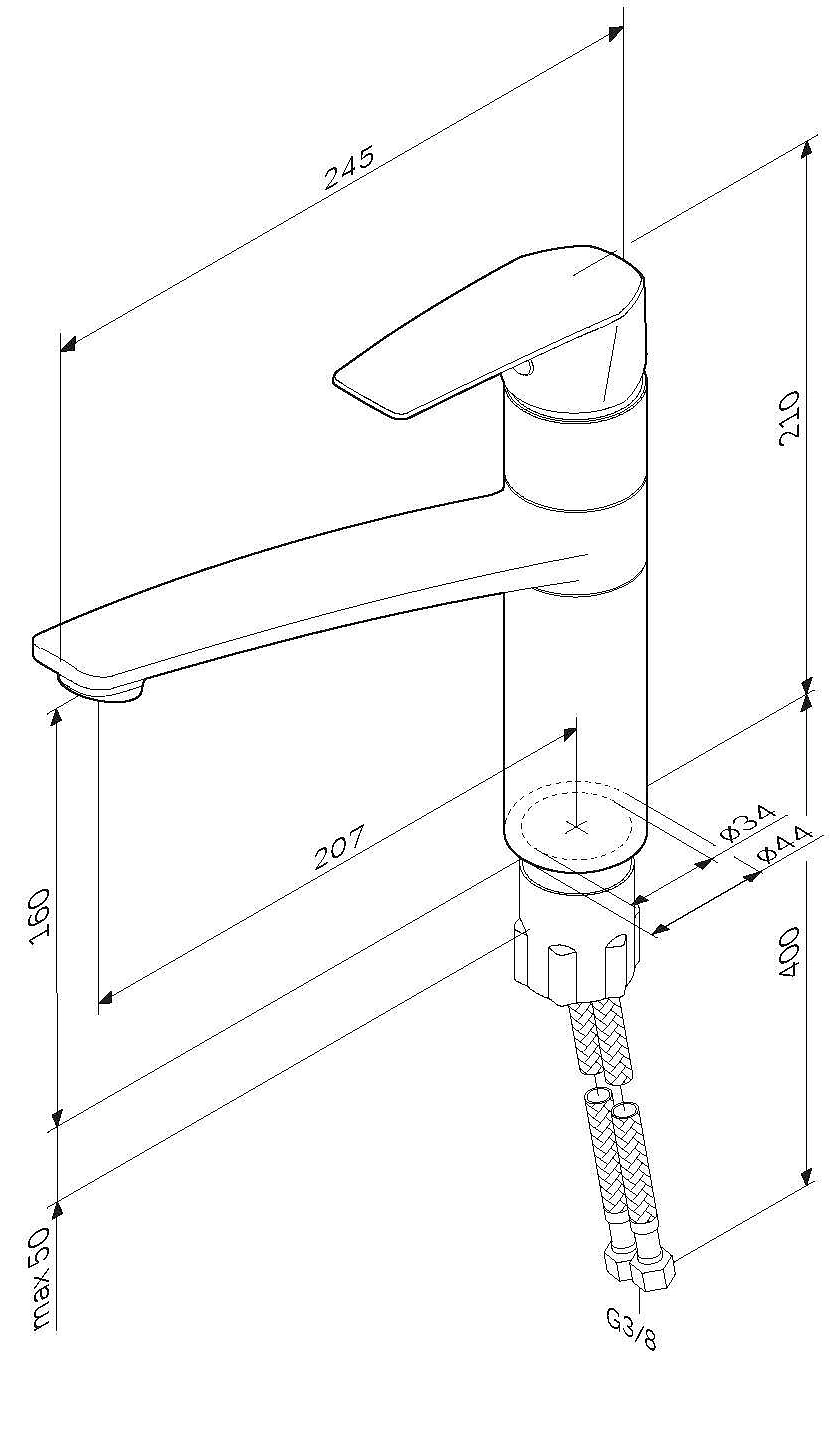 Смеситель для кухни устанавливается на мойку в одно монтажное отверстие, подсоединяется к водопроводным трубам с помощью гибкой подводки.