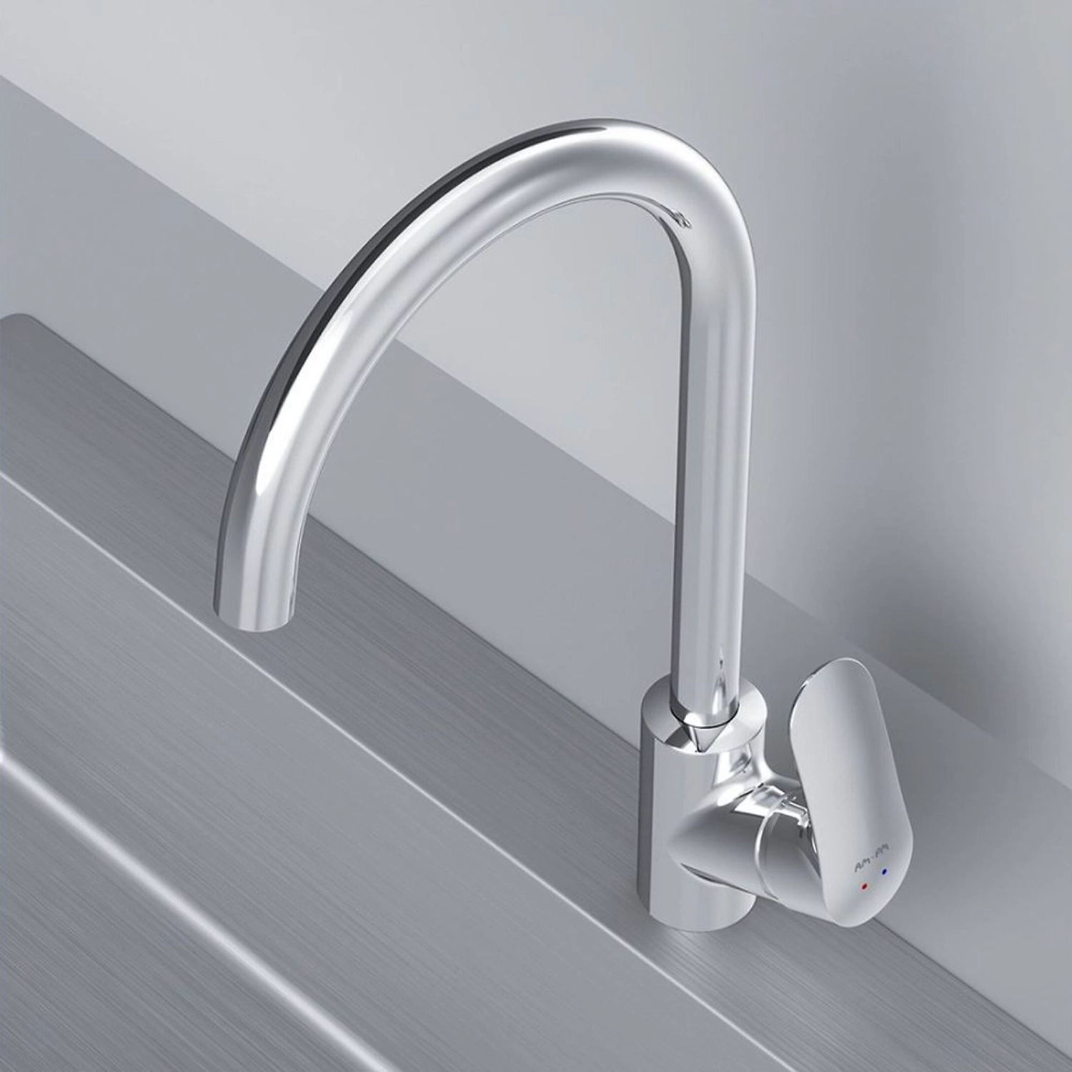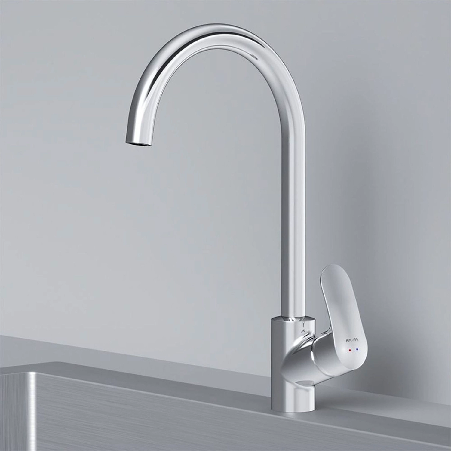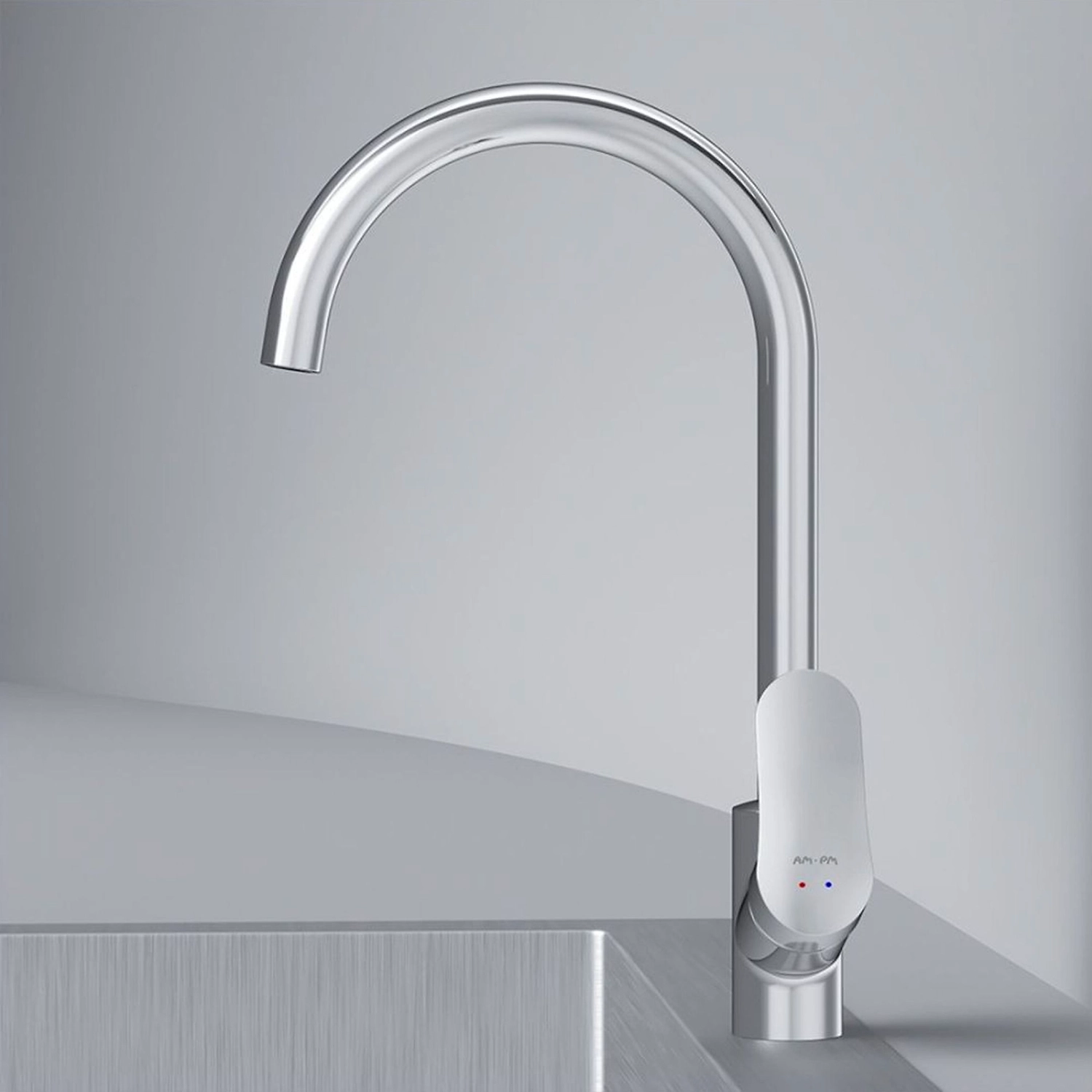 AM.PM Like F8007700 - функциональный, стильный кухонный смеситель со встроенным каналом для питьевой воды, поворотным изливом, керамическим картриджем и однорычажным механизмом управления.