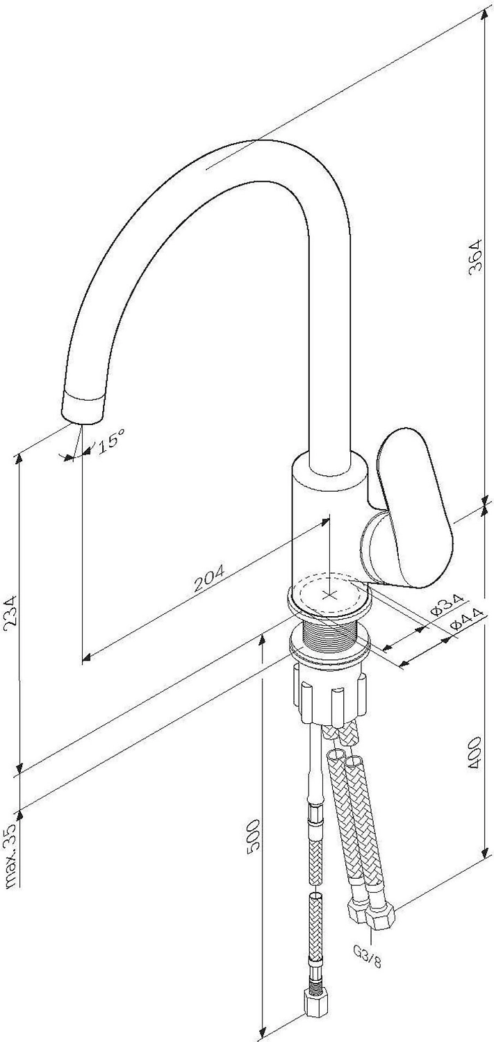Смеситель для кухни устанавливается на мойку врезным способом, подключается к фильтру для воды и водопроводу с помощью входящей в комплект гибкой подводки.