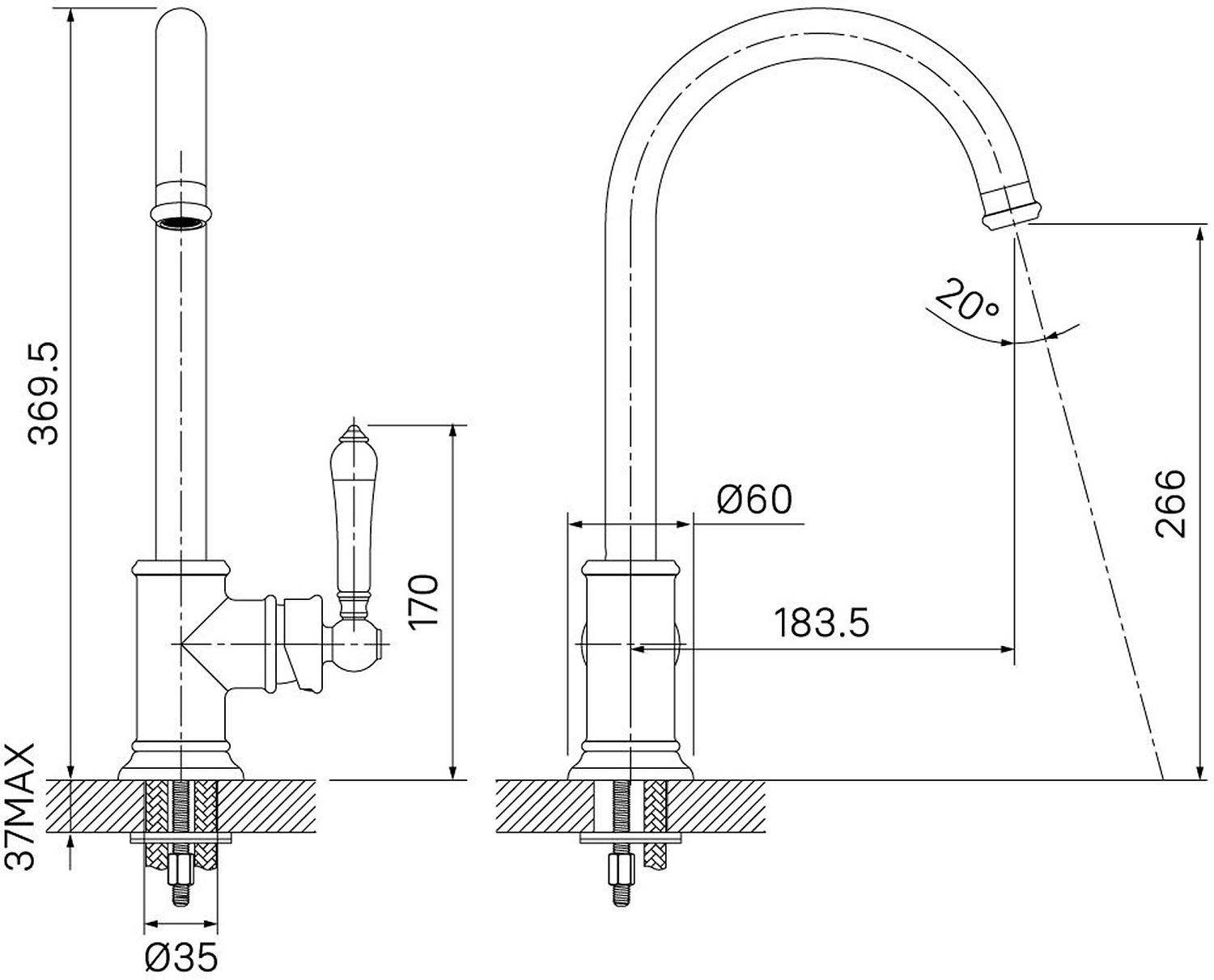 Смеситель IDDIS OXFORD OXFSBJ0I05 - винтажный акцент в интерьере кухни. Высокий поворотный излив элегантной формы и аккуратная керамическая ручка в ретро-стиле привносят в дизайн эстетику старины и английский шарм.