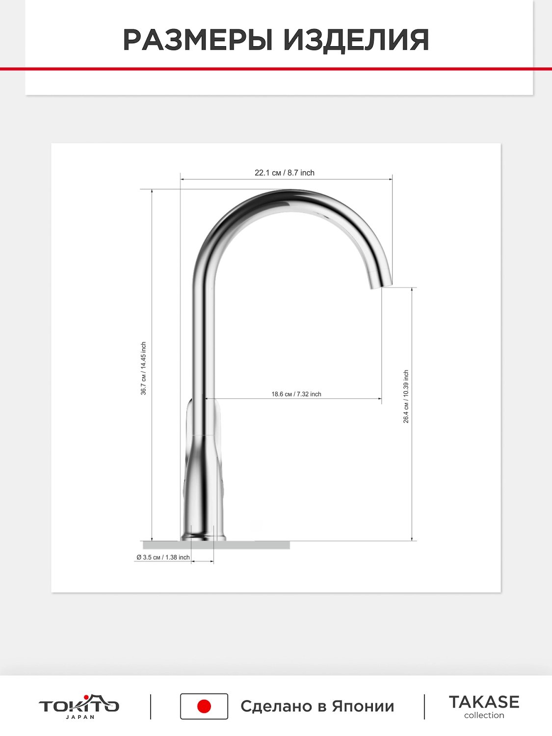 Продукция марки TOKITO – это гармоничное сочетание надежности и эстетической привлекательности. Японские смесители изготовлены исключительно из материалов высокого качества с использованием современных технологий, поэтому их гарантийный срок службы составляет 7 лет.
