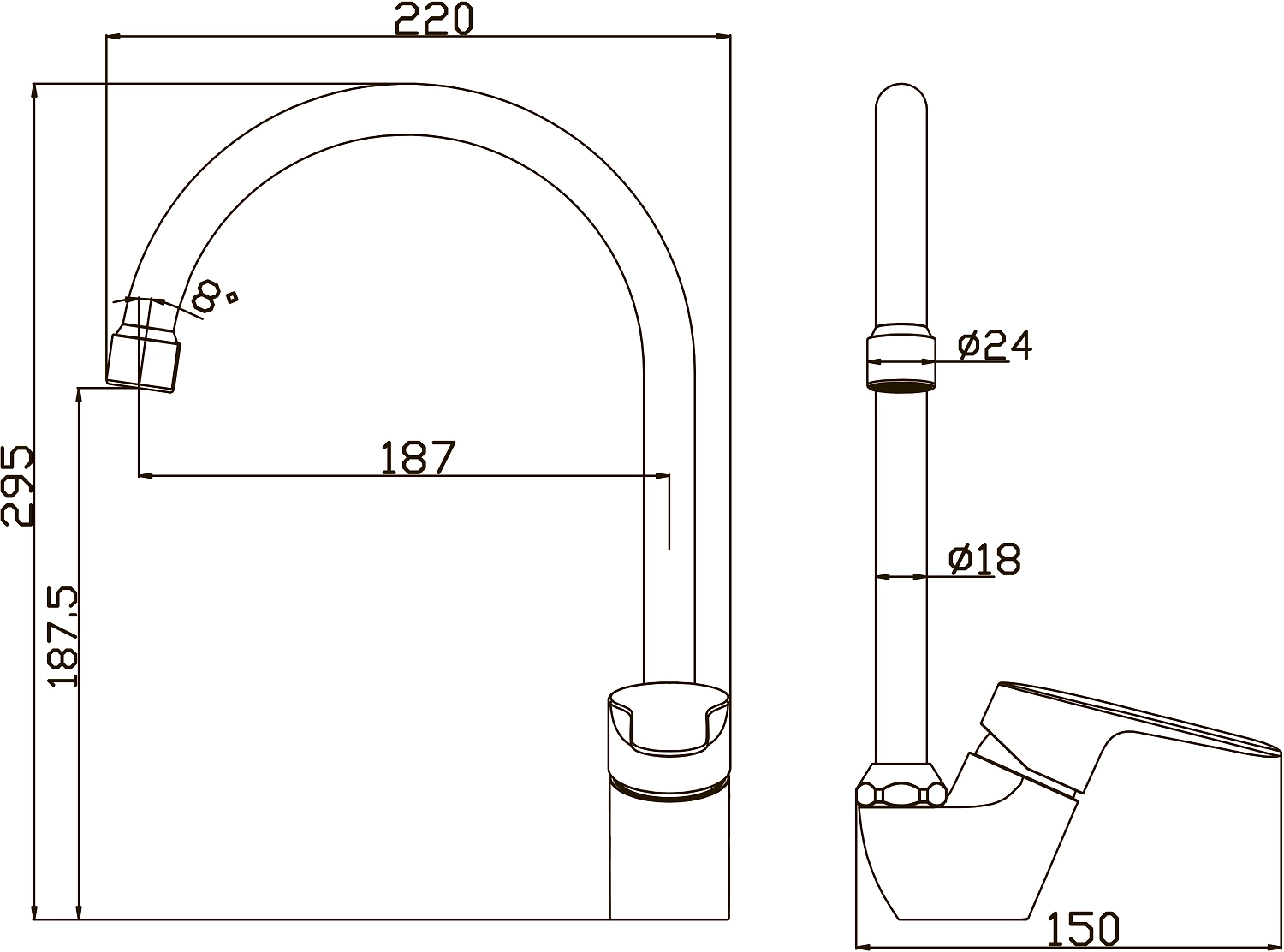 Смеситель для кухни ARGO AURA 3503 18.7 однорычажный - сантехнический прибор, который регулирует и смешивает поток воды для получения необходимой температуры и напора. Высота излива -18.