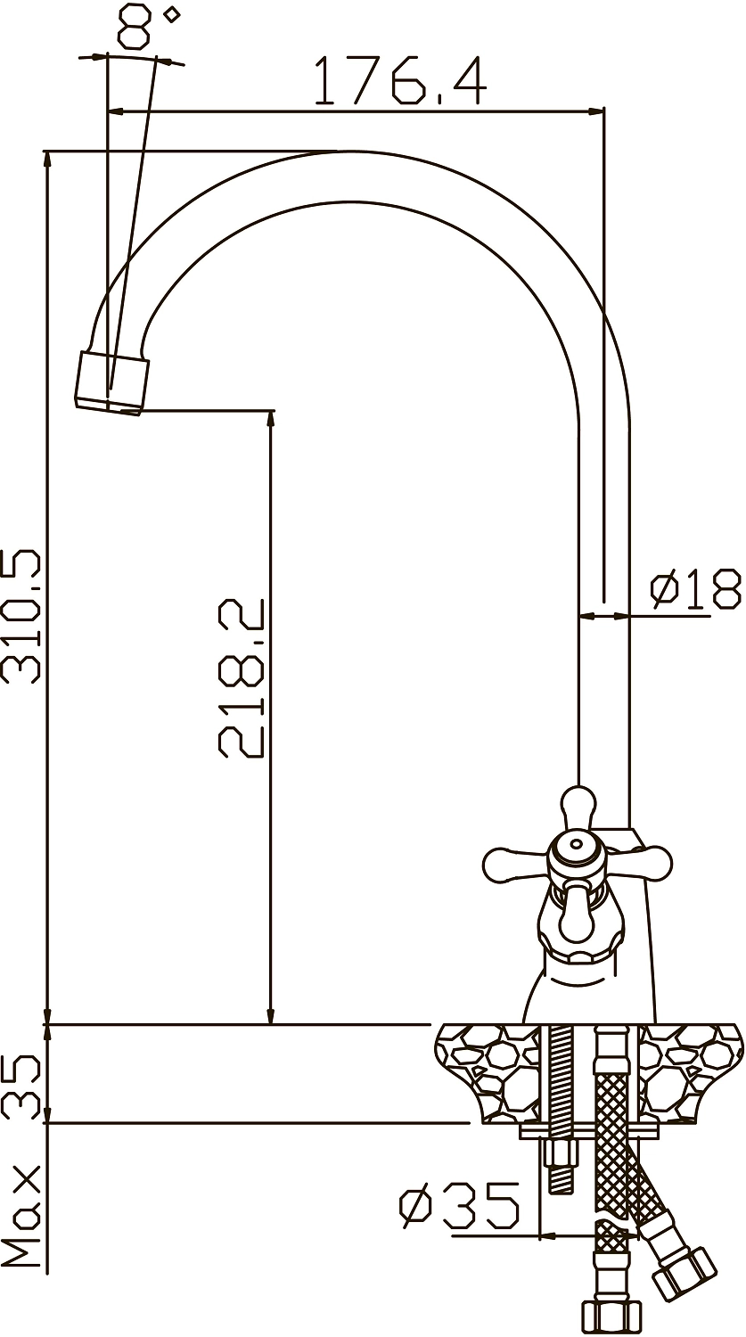 • Длина излива 176.4