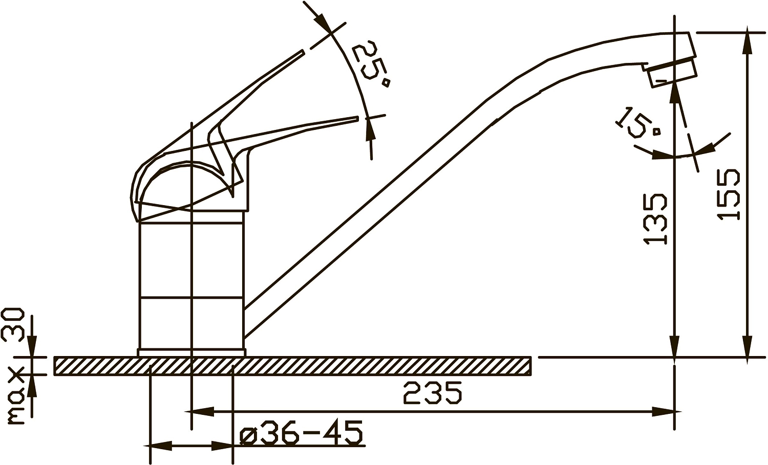 • Длина излива 235