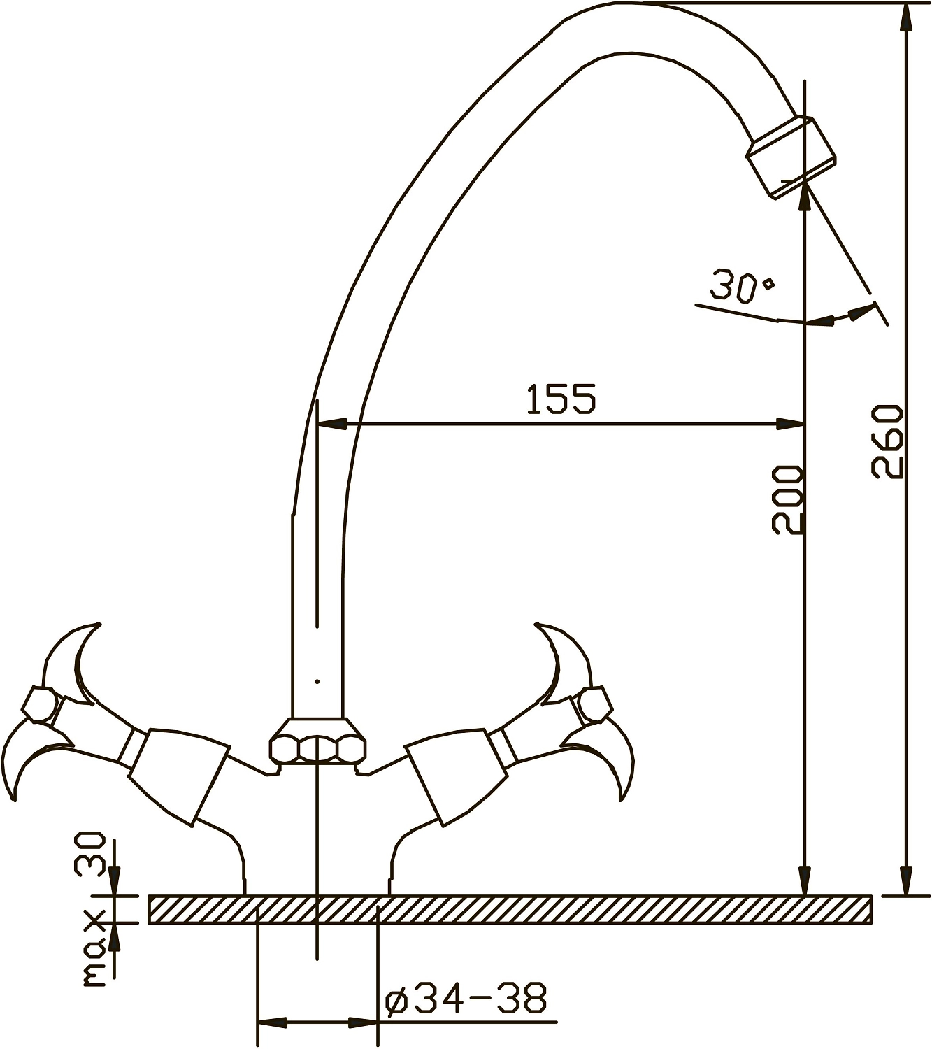 Смеситель для кухни ARGO IRIS 022 двухвентильный - сантехнический прибор, который регулирует и смешивает поток воды для получения необходимой температуры и напора.