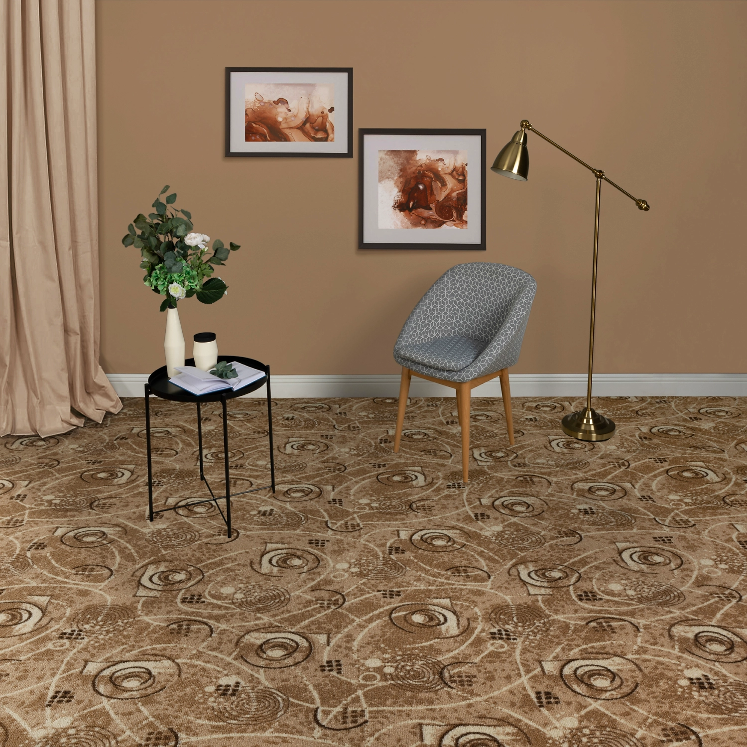 Ковролин фабрики "Нева Тафт" Санкт-Петербург с коротким ворсом. Изделие из полиамида для домашнего интерьера шириной 400 см.