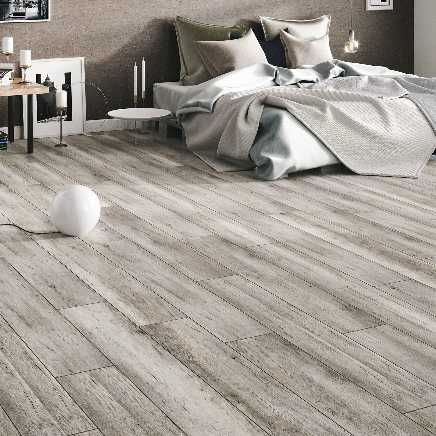 Ламинат с реалистичной древесной структурой и мягко очерченными волокнами напоминает натуральную доску. Благодаря V-образной фаске, полученной путем фрезерования краев, после укладки возникает эффект отдельных досок, напольное покрытие приобретает более естественный вид. Декор подходит для современных стилей в дизайне интерьера.