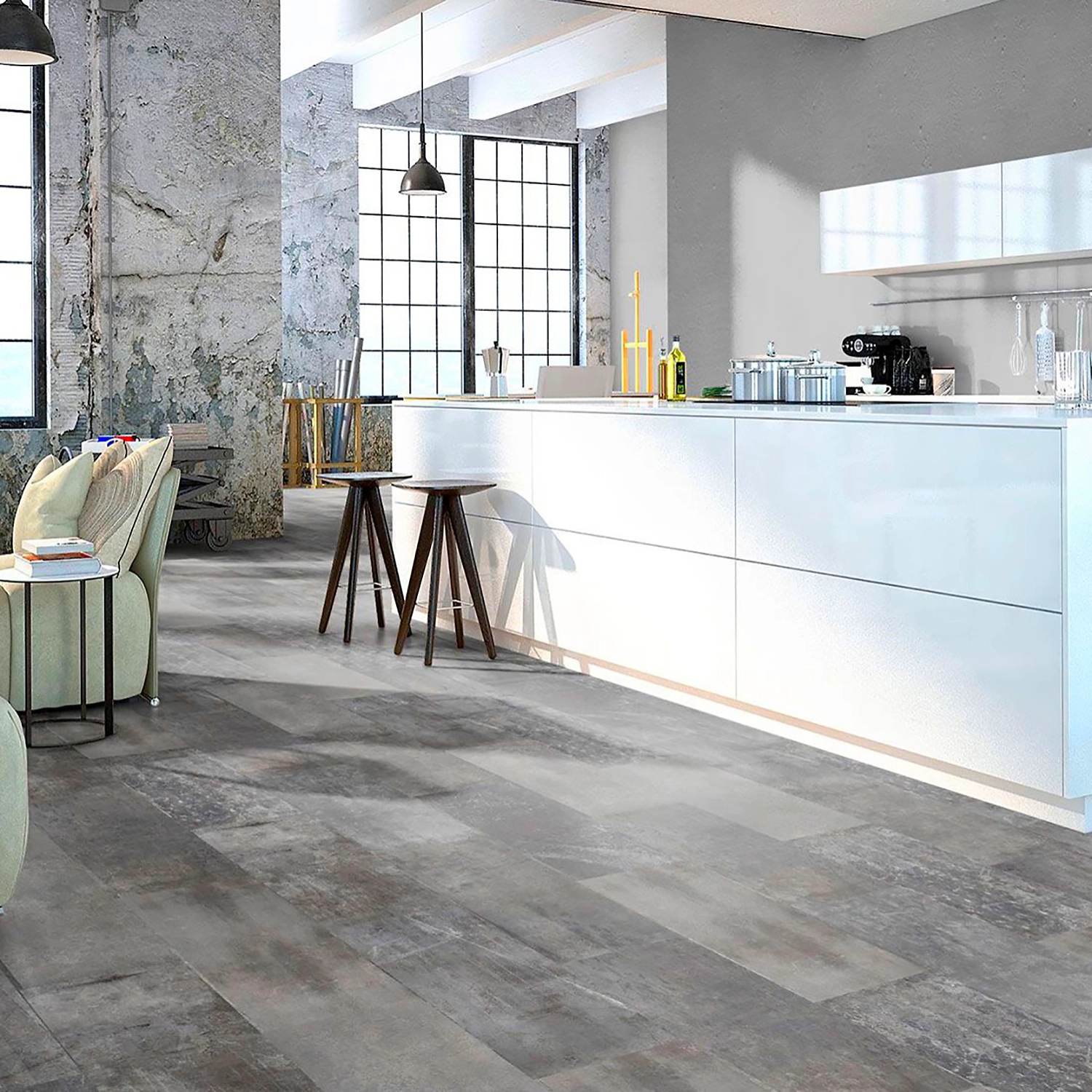 Практичное напольное покрытие идеально подходит для кухонного интерьера, для коридоров и ванных комнат.