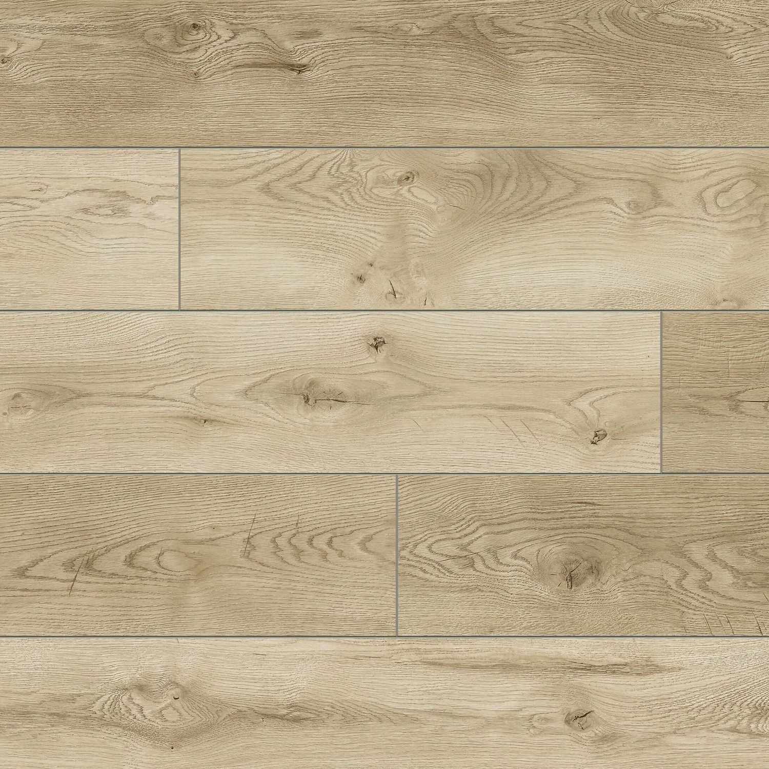 - V-образная фаска и синхронное тиснение, при котором структура поверхности совпадает с декоративным рисунком, придают ламелям сходство с настоящим дубовым паркетом.
