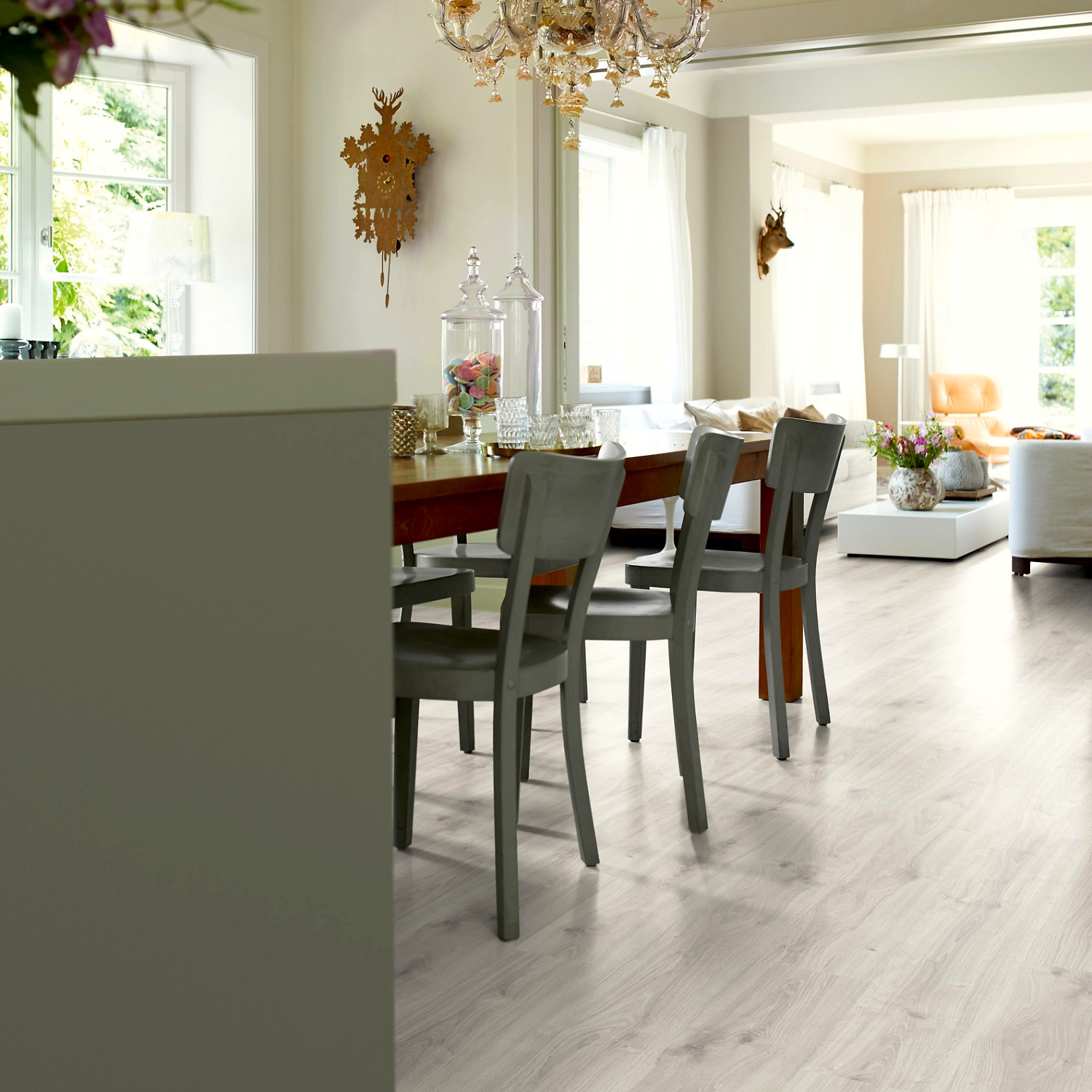 Ламинат EGGER HOME Laminate Дуб Церматт высокого класса износостойкости подходит для жилых, общественных и коммерческих помещений с интенсивной нагрузкой на пол: квартир, домов, офисов, приемных. Древесный декор с неярко выраженными серыми порами выглядят стильно и элегантно, гармонично дополняет современный интерьер, создает атмосферу тепла и комфорта с ноткой викторианского шика.