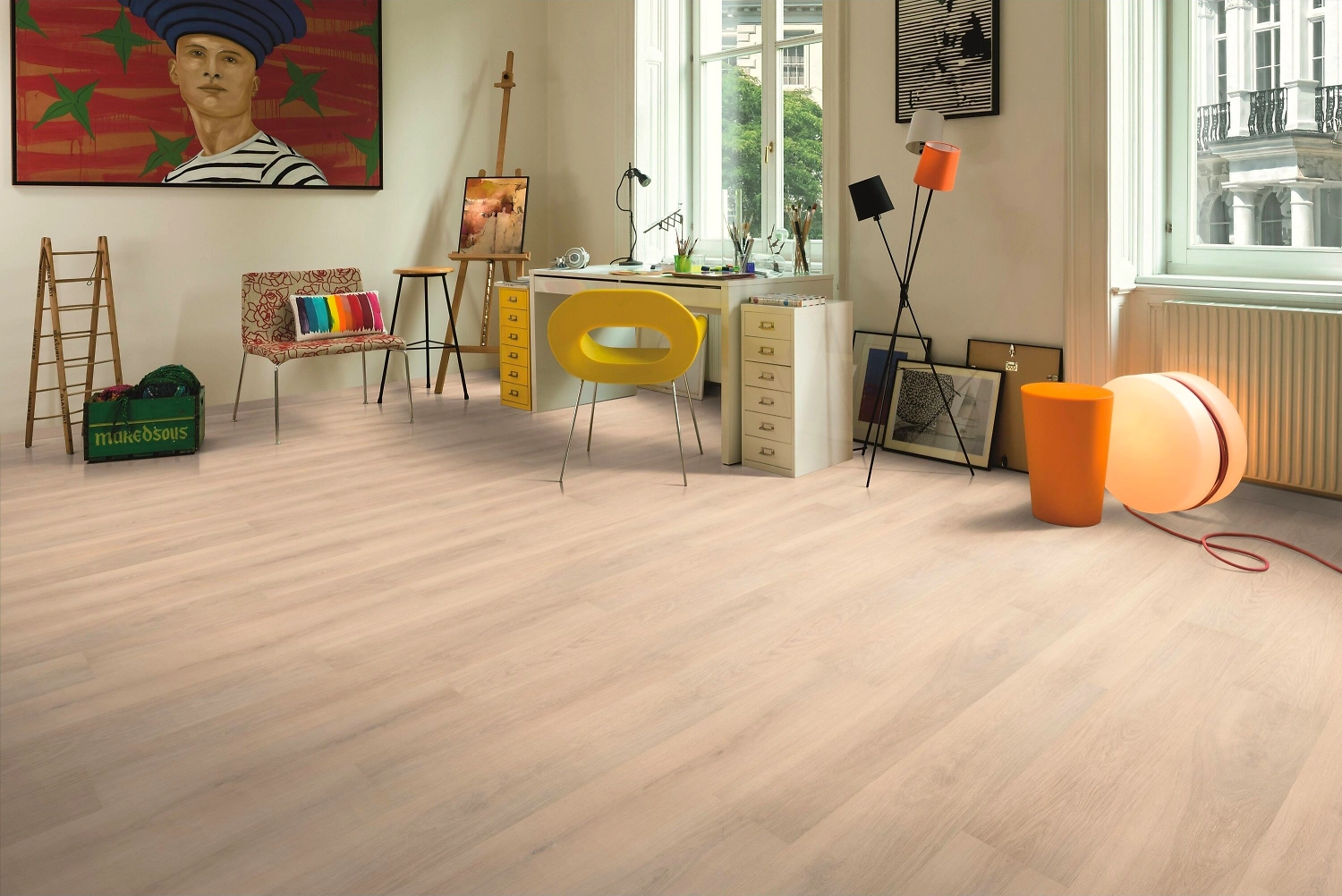 Светлая дубовая доска с ярко выраженной древесной структурой визуально увеличивает пространство, создает ощущение свежести и чистоты. Беленый дуб универсален, он сочетается с отделочными материалами и декоративными элементами различных цветов, вписывается в интерьеры в стиле лофт, минимализм, скандинавский и т.п.