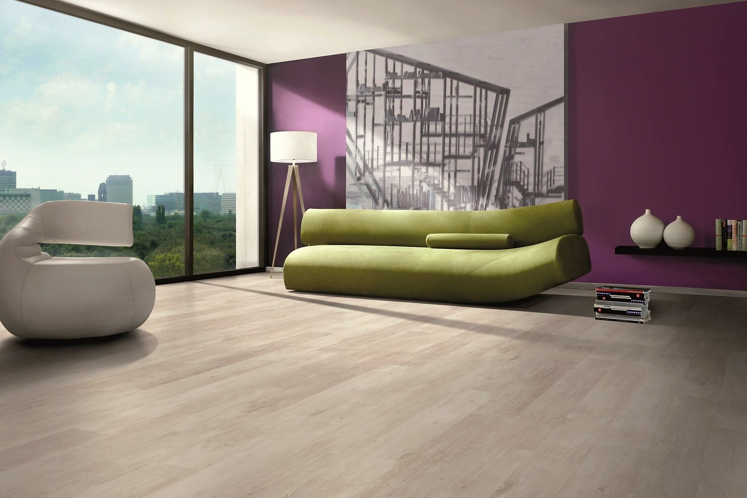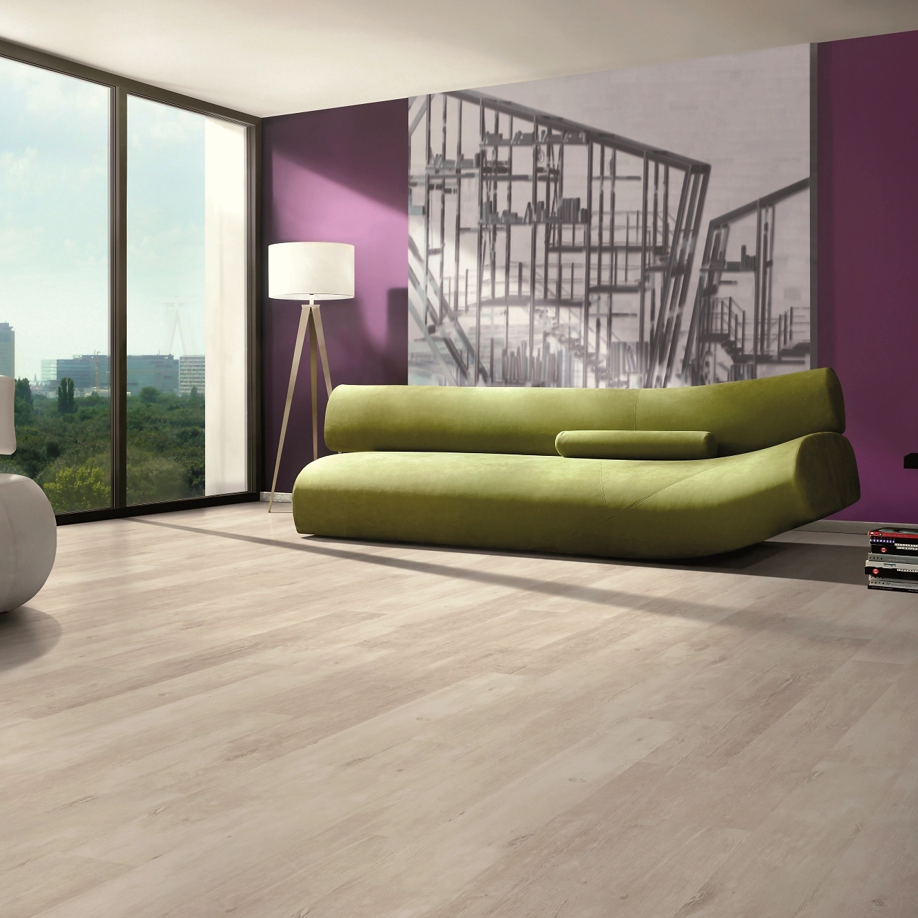 Светлое покрытие визуально увеличивает площадь комнаты, поэтому его можно стелить даже в небольших помещениях, наполняя их пространством, делая светлее и уютнее. Благодаря эффектному древесному рисунку с мелкими порами, ламинат прекрасно подойдет для оформления помещений в любом современном стиле: хай-тек, гранж, лофт, фьюжн.